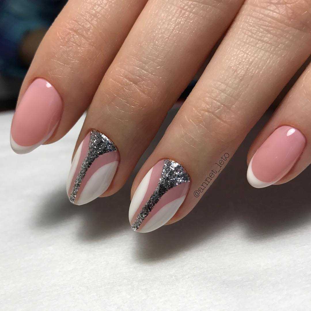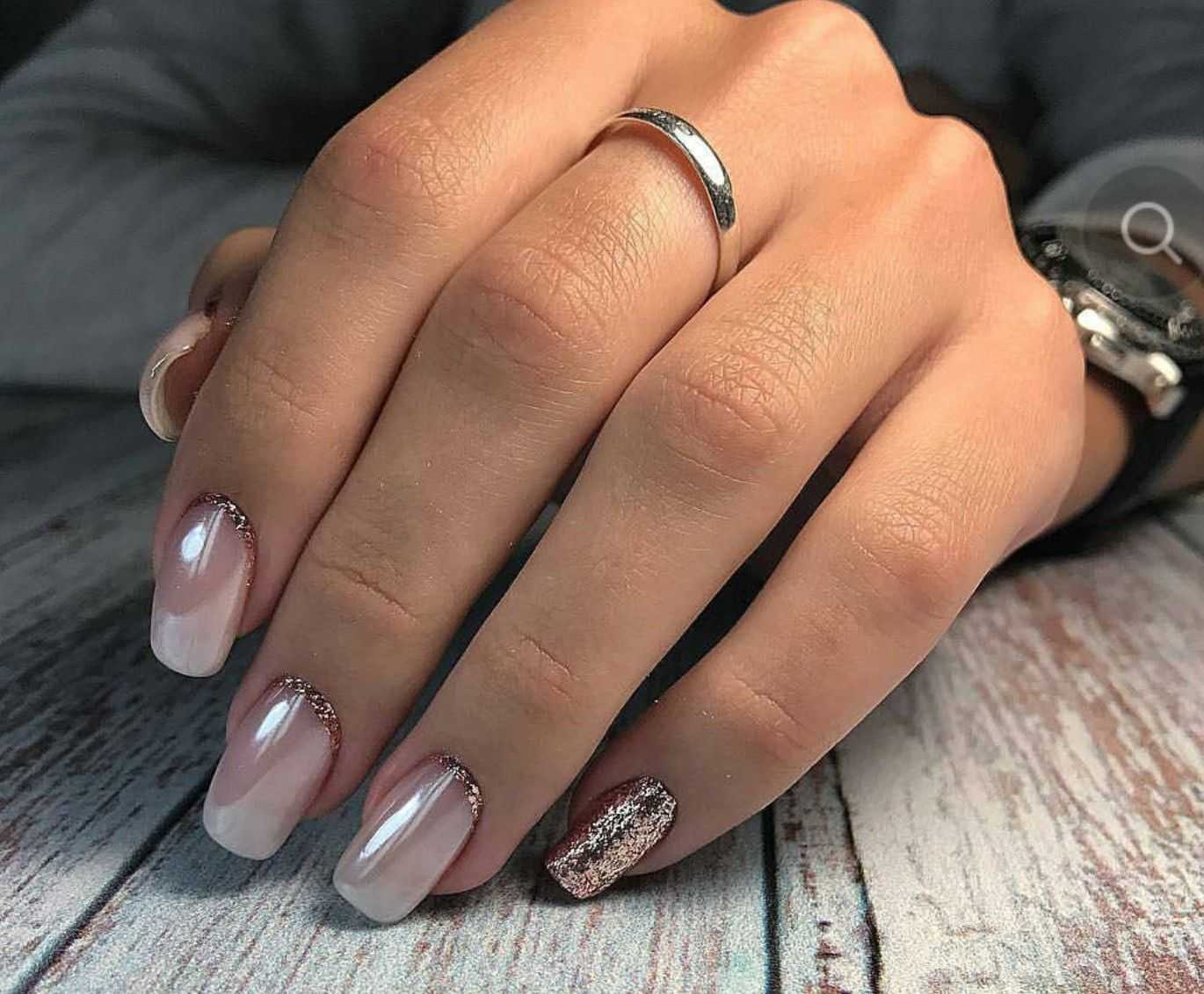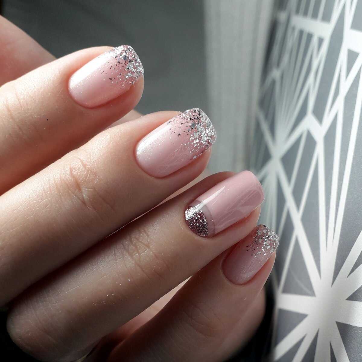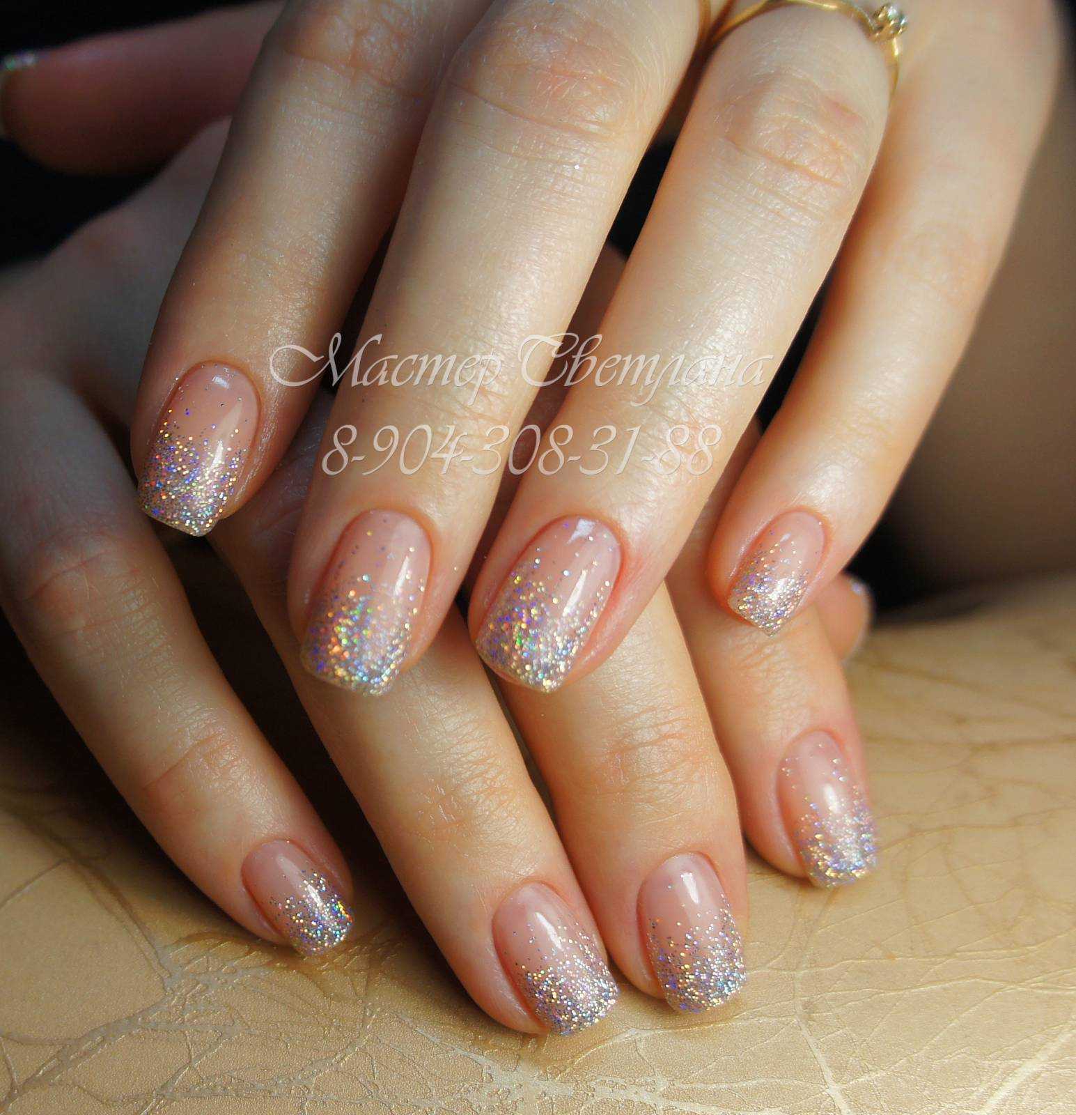 Одним из очень удобных способов превращения маникюра в совокупное мерцающее сияние выступает глиттер. Он является настоящим помощником при моделировании блестящего дизайна ногтей. Фото френча с блестками из глиттера, которыми пестрят странички социальных сетей, служат живым тому доказательством. При этом его удобство заключается в изначально сухой песчаной субстанции, за счет чего френч с глиттером очень легко наносить на ногти в разных пространственных плоскостях: