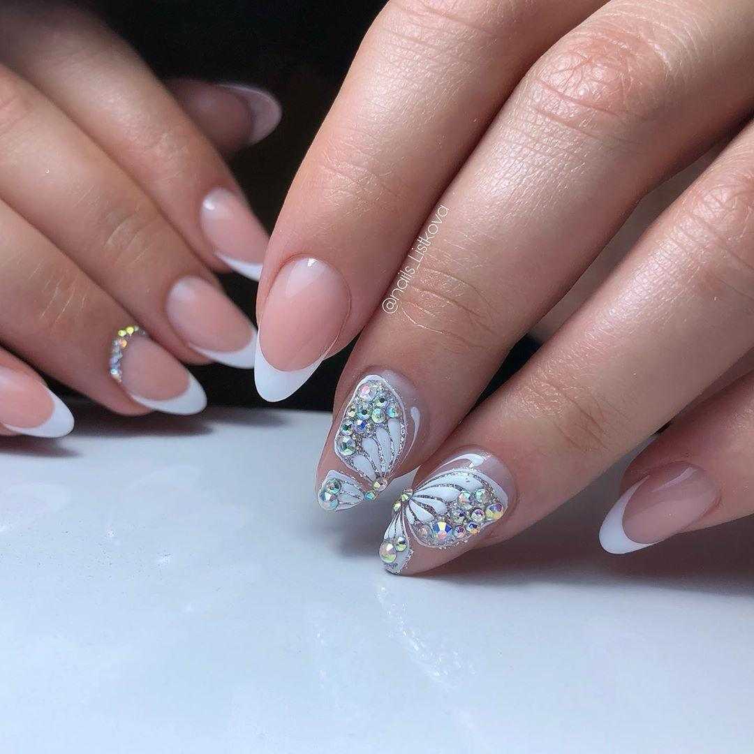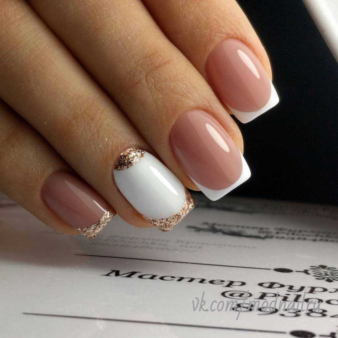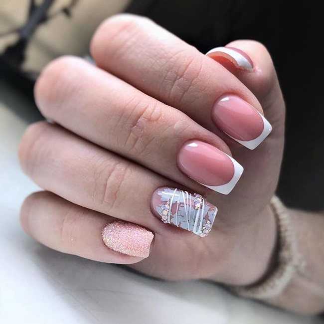 Мода на рисунки постоянно меняется. Классический френч с блёстками, как на фото остаётся актуальным всегда. Вот какие рисунки стали самыми модными в 2022 – 2023 г: