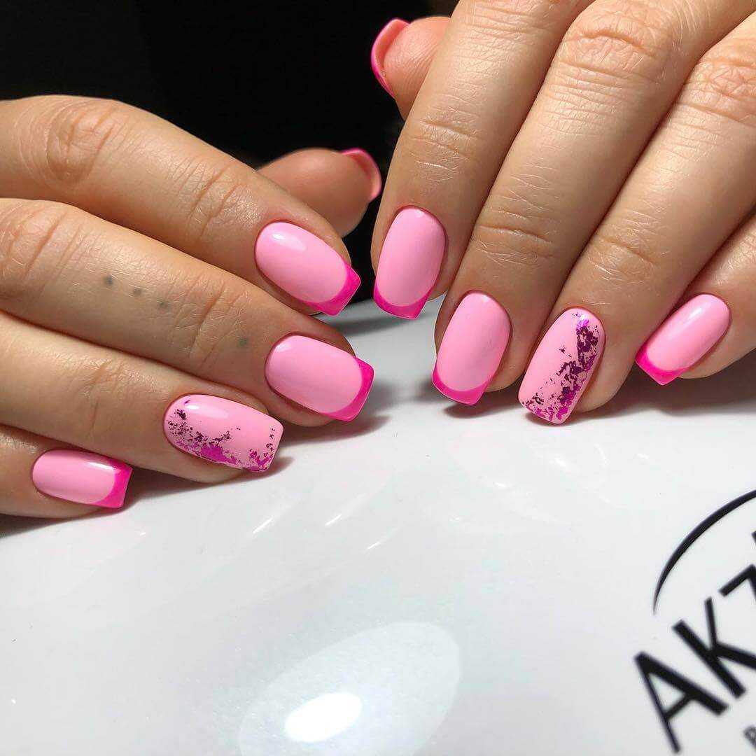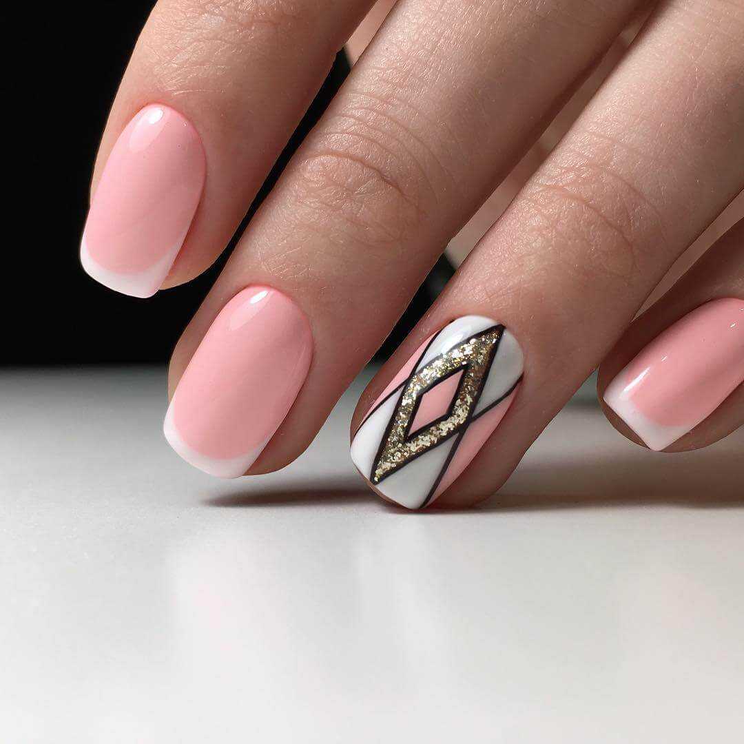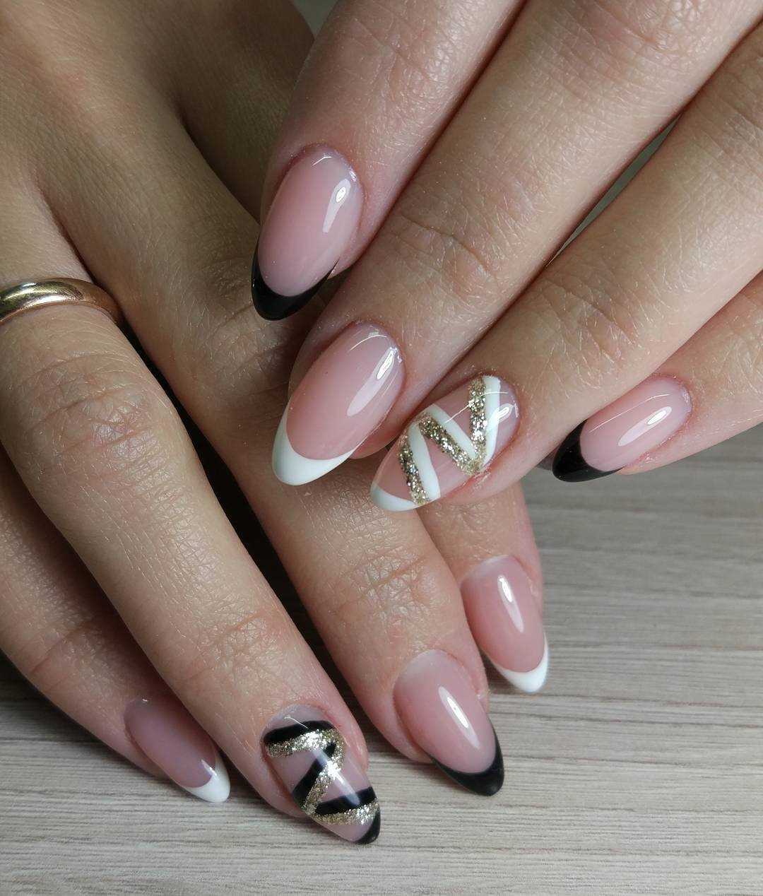 Смешение контрастных цветов, добавление декора превращает классический маникюр в причудливое буйство красок. Делают дизайн самобытным, эксцентричным, неповторимым. Микс розового, черного, золотого добавляет маникюру шарма, благородства. Современный френч может иметь необычный дизайн, при этом сохранить классическую форму и вид.