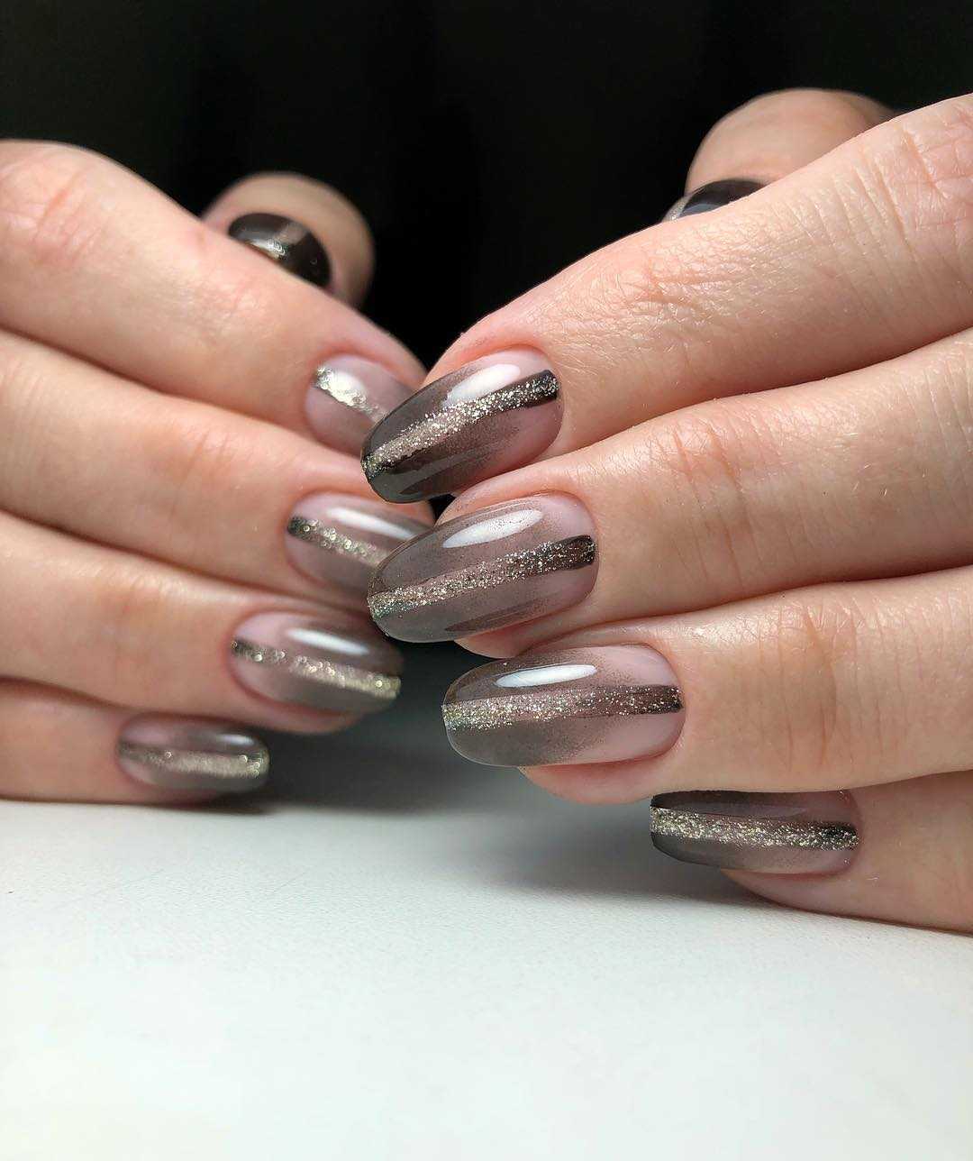 Нейл-арт с лункой рассказывает об утонченном вкусе обладательницы. Линии дизайна очень грациозны и элегантны. Стильный нейл-арт выполняются в насыщенной и светлой цветовой гамме, но очень эффектно маникюр френч блестящий выглядит в темном колоре. Самое главное, это оставить лунку незаполненной, чтобы сочетание темного фона и прозрачной участка смотрелось восхитительно.