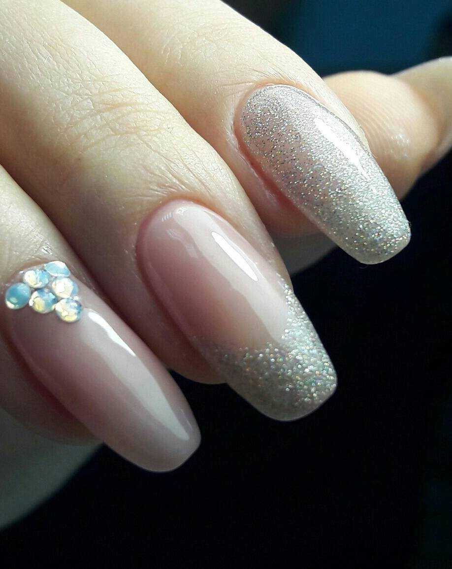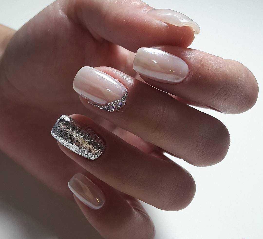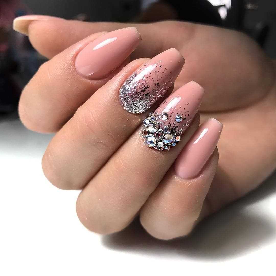 - Минималистичную инкрустацию стразами, можно поэкспериментировать с цветными камушками и сочетанием нескольких цветов.