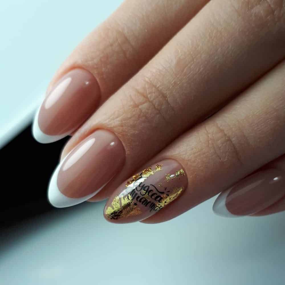 Металлический нейл-арт появился только в прошлом году. Но сегодня его подача изменилась в корне. Блестки, задействованные в дизайне ногтей при технике френч, заменили фольгой, линия улыбки стала иметь зеркальную поверхность с сиянием драгоценного металла.