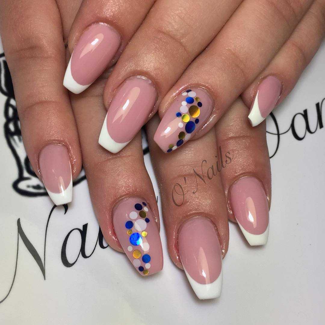 На длинные ногти можно сделать любой френч. Миксовать цвета разных оттенков, обильно наносить украшения, добавлять рельефную лепку, крупные детали декора.