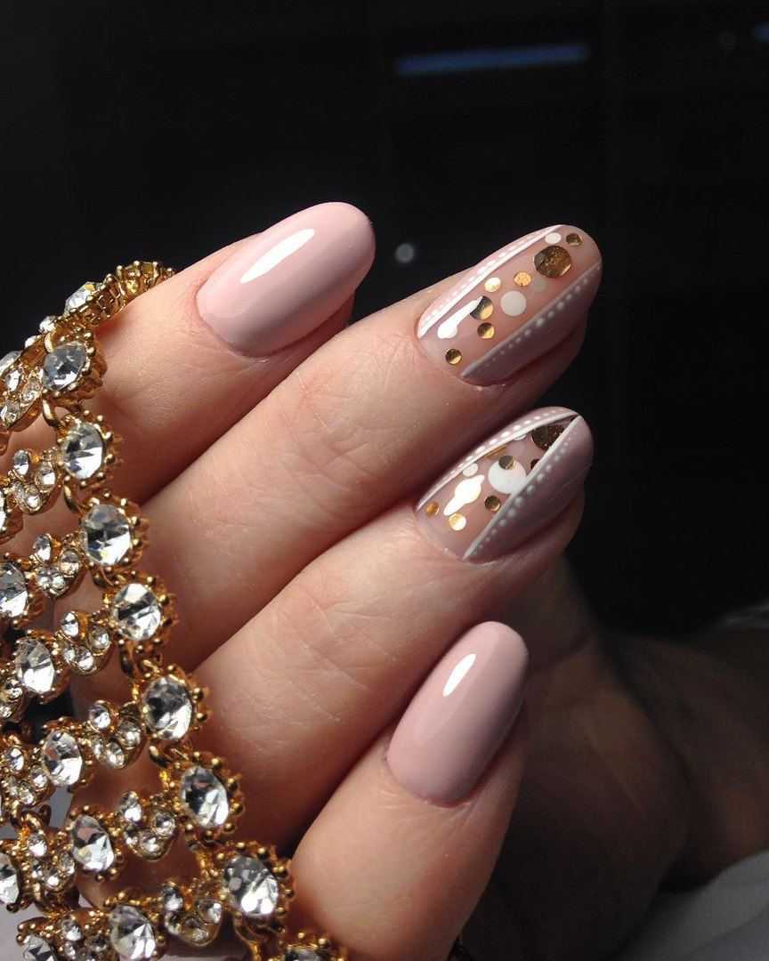 Ноготки круглой формы имеют свою специфику. Длина ногтевой поверхности короткая, соответственно дизайн должен быть элегантным, не броским с минимумом украшений.