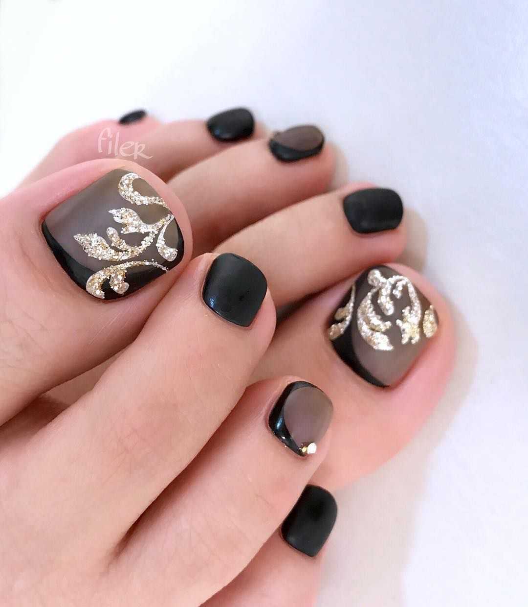 #2 Модный черно-золотой педикюр