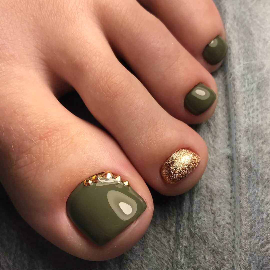 #4 Стильный педикюр с золотыми камнями