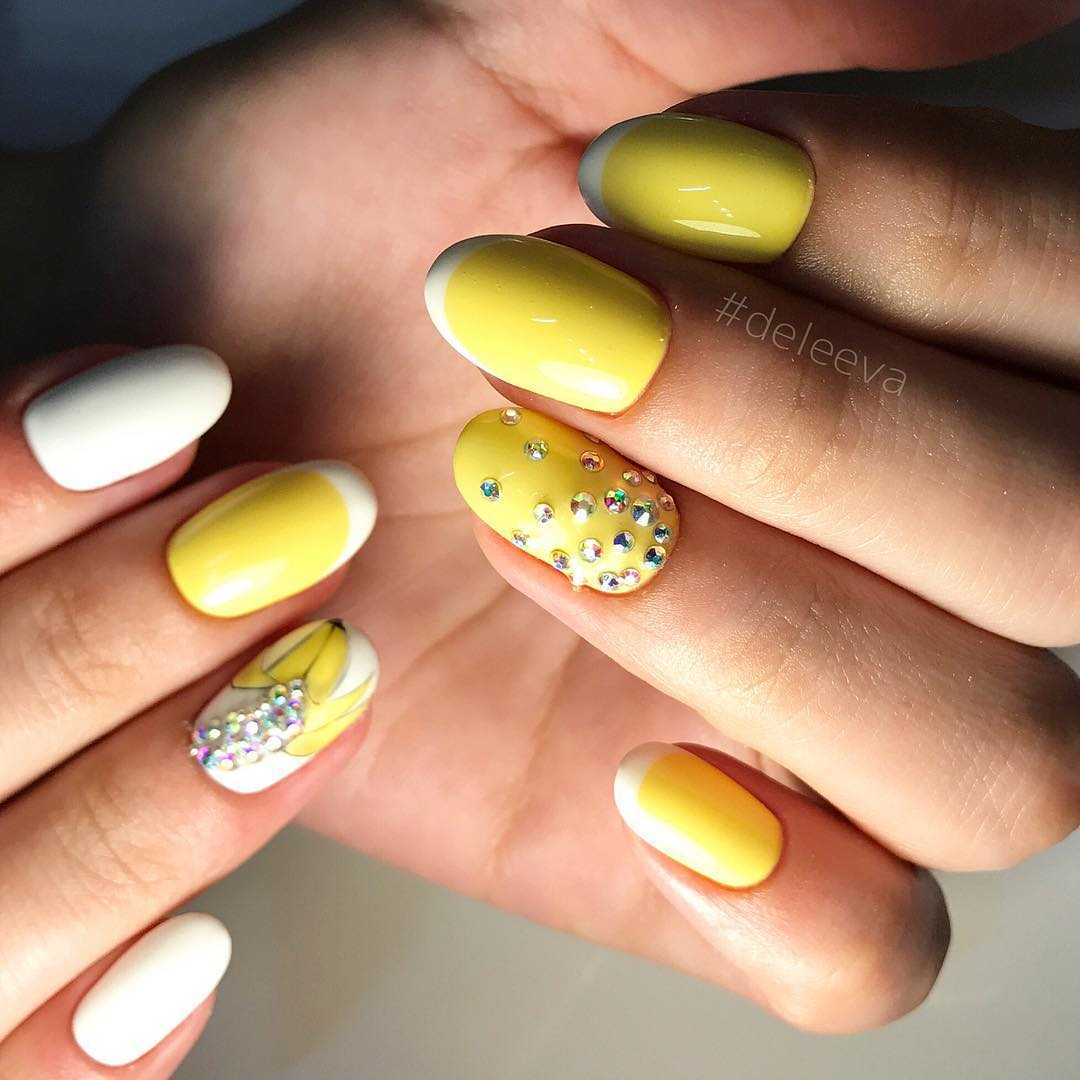 Хотите создать интересный и сияющий френч для праздника или вечеринки, тогда вам точно стоит обратить внимание на дизайн, где первая линия на кончике ногтя остается стандартной, но вот дополняется она по краю стильным декором в виде стразов, которые могут быть самых разнообразных цветов. @vu_nail