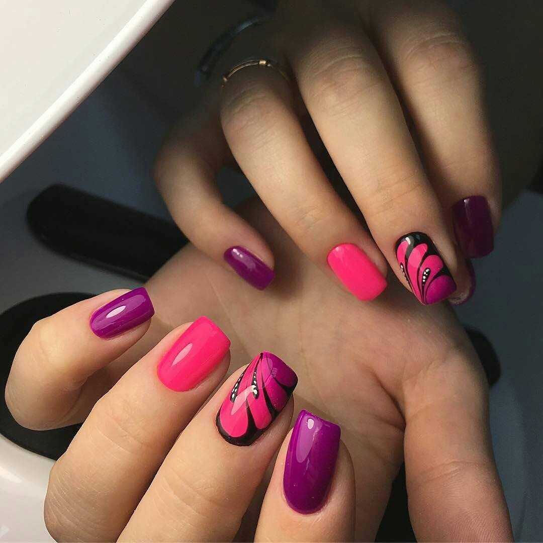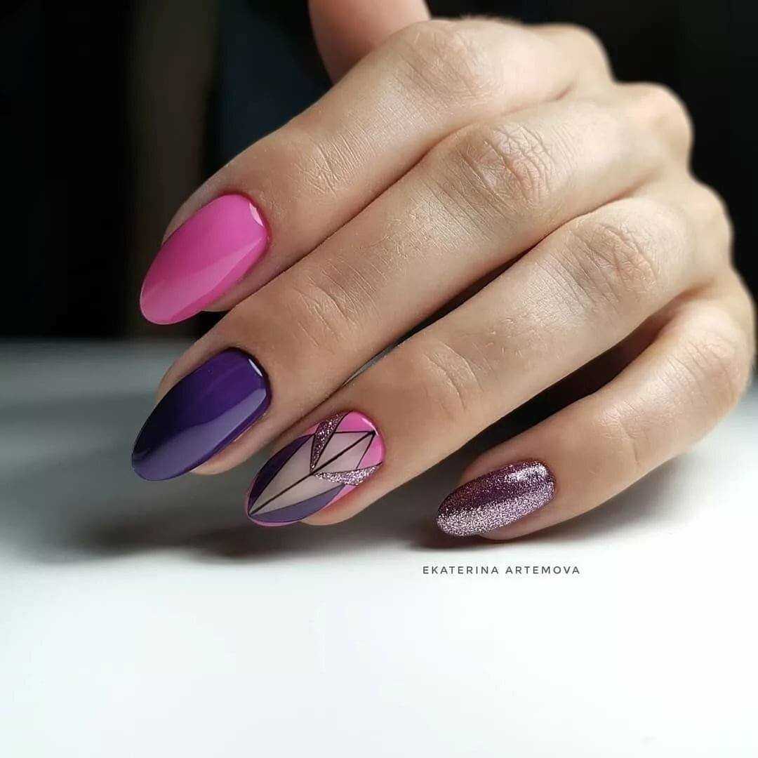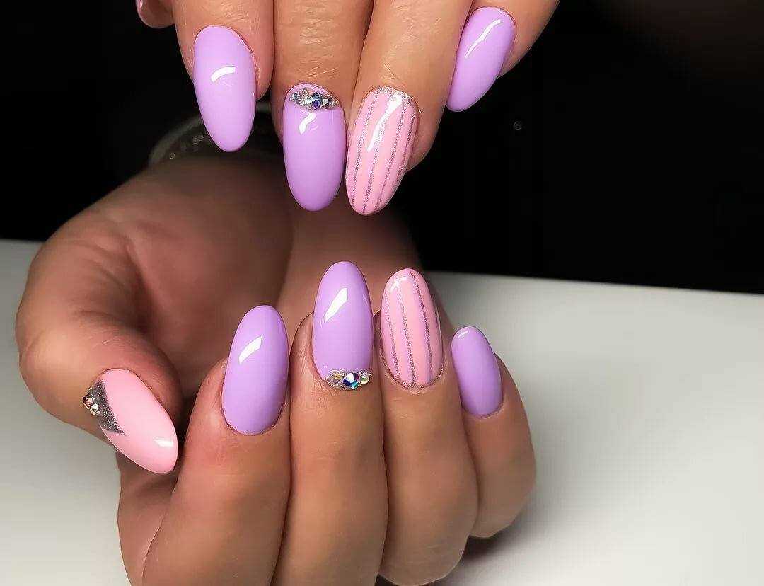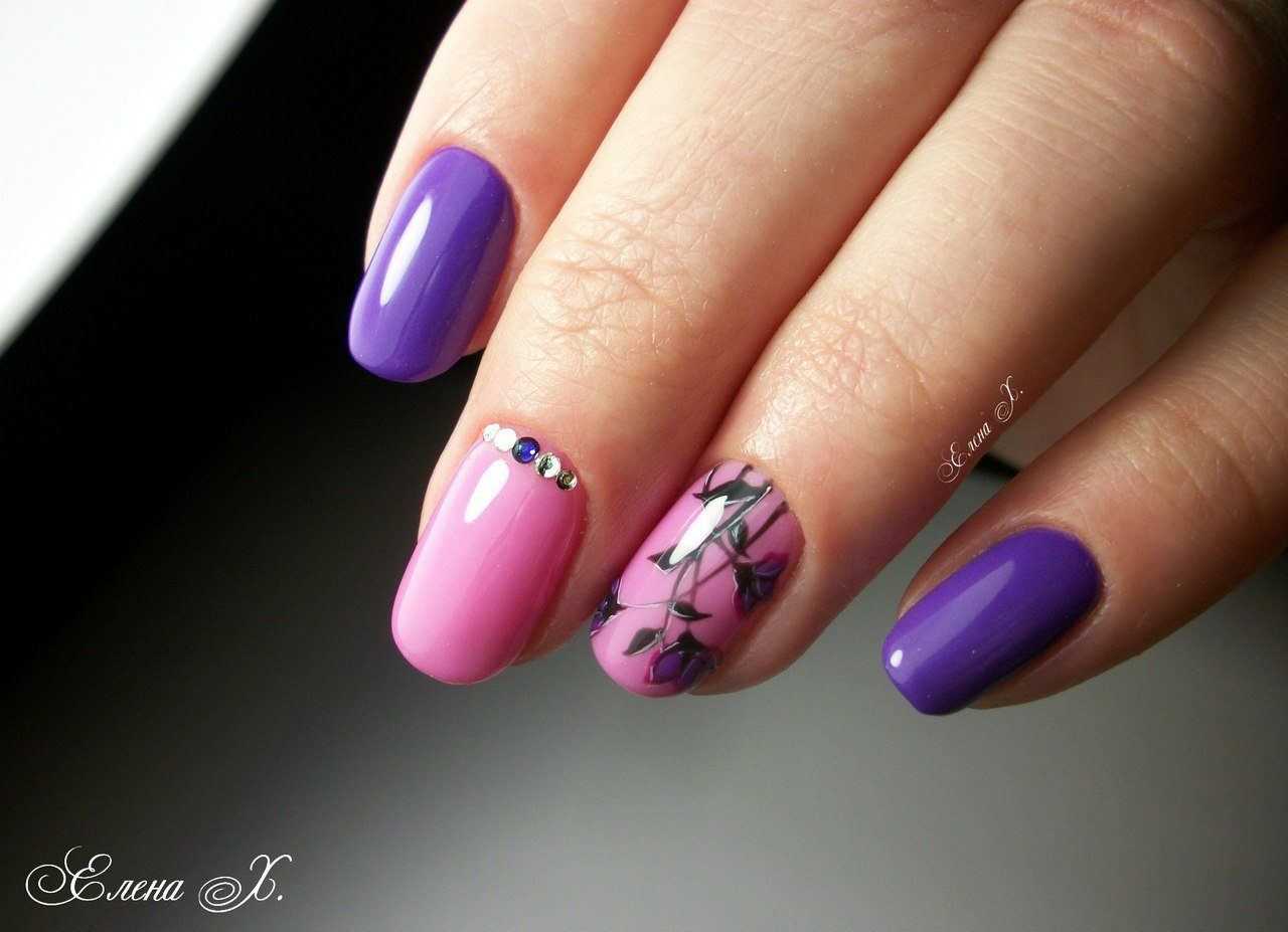 Розовый просто создан для сиреневых тонов. С их помощью можно воплотить в жизнь нежный романтический дизайн маникюра. Стоит руководствоваться правилом — чем темнее и интенсивнее розовый тон, тем темнее и сочнее должен быть фиолетовый.