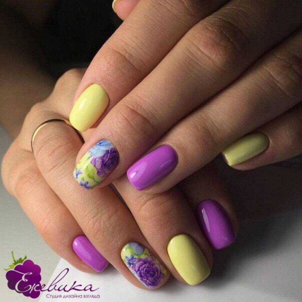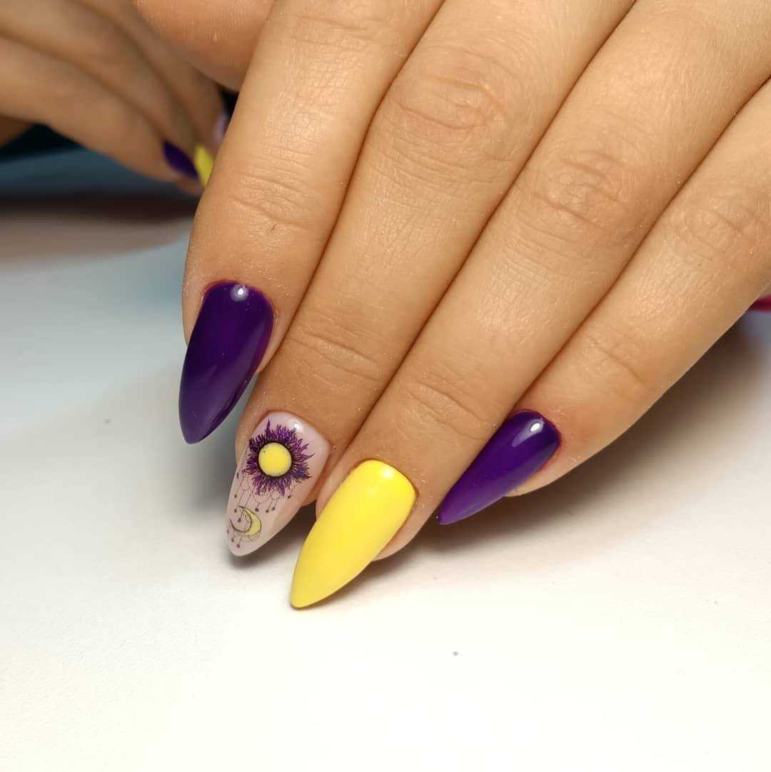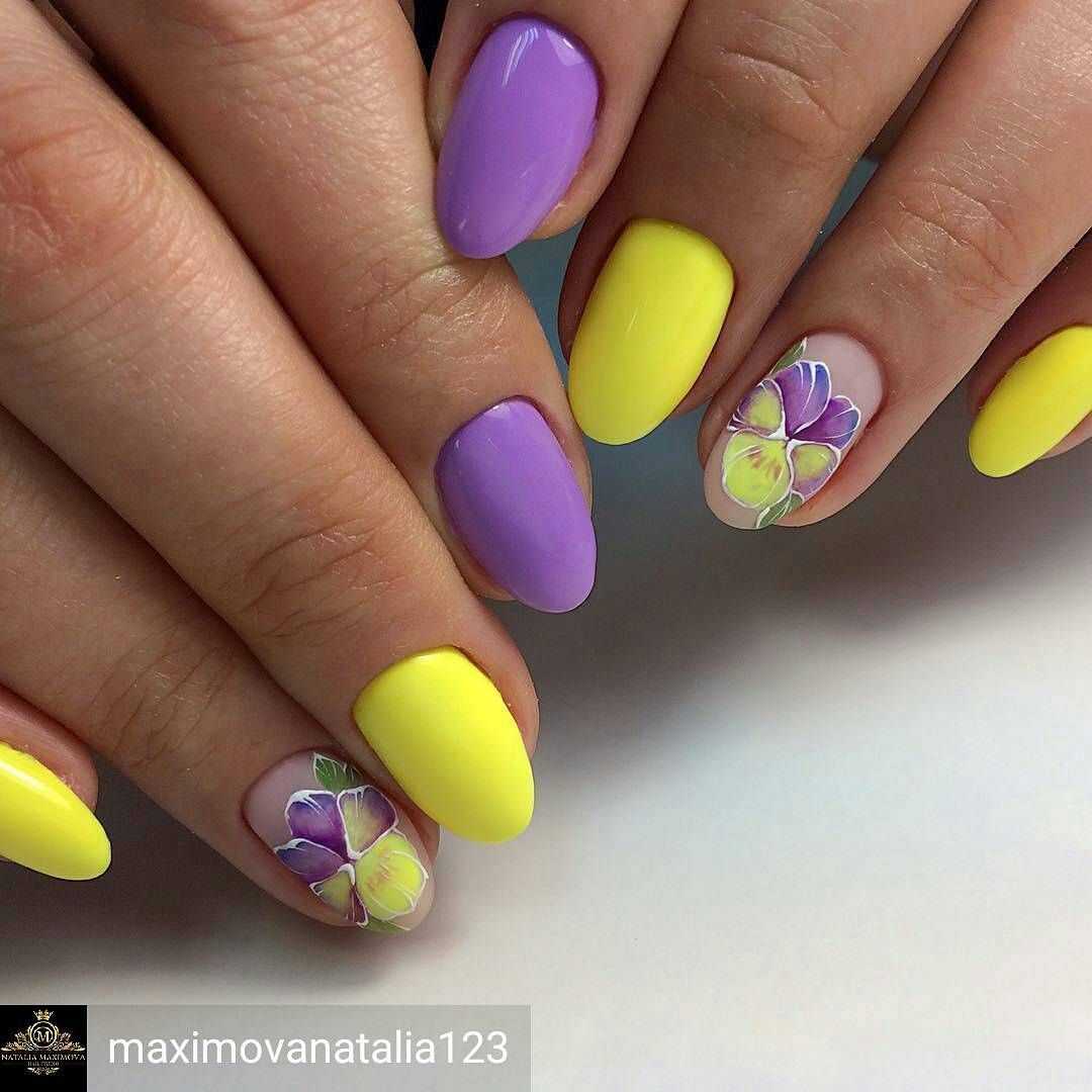 #6 Весенний фиолетовый маникюр с желтым 2020