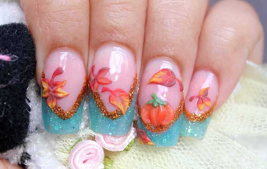 Для создания изысканного маникюра отличным вариантом станет объемная лепка. Это очень эстетичный и привлекательный дизайн. Акцент обычно делают на одном ногте. Девушки любят выбирать бабочек, цветы или веточки. С разноцветной «улыбкой» смотрится ошеломительно.