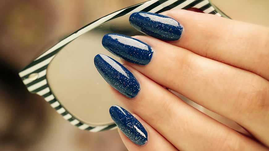 Здесь господствуют серебряные и металлические оттенки. Но не менее актуальны и глубокие синие, винные, черные, голубые и зеленые. Зимой можно оформить кончики ноготков сверкающим белым глиттером. Конечно, такие яркие акценты особенно актуальны в новогодние праздники.