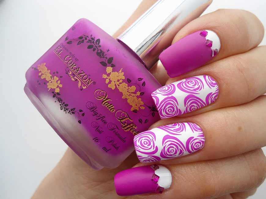 Летом дизайнеры предлагают использовать в нейл-арте яркие краски. На белом или молочном фоне будет красиво смотреться красная, ярко-розовая, сиреневая роза. - Рельефный нейл-арт. Френч с рельефным рисунком на безымянном пальце не может остаться без внимания. Объем достигается благодаря использованию акриловой пудры. Затем его покрывают гель-лаком или акриловыми красками. Крупный цветок обычно располагают в центре ногтевой пластины, а композицию из мелких бутонов вдоль линии кутикулы или сбоку.