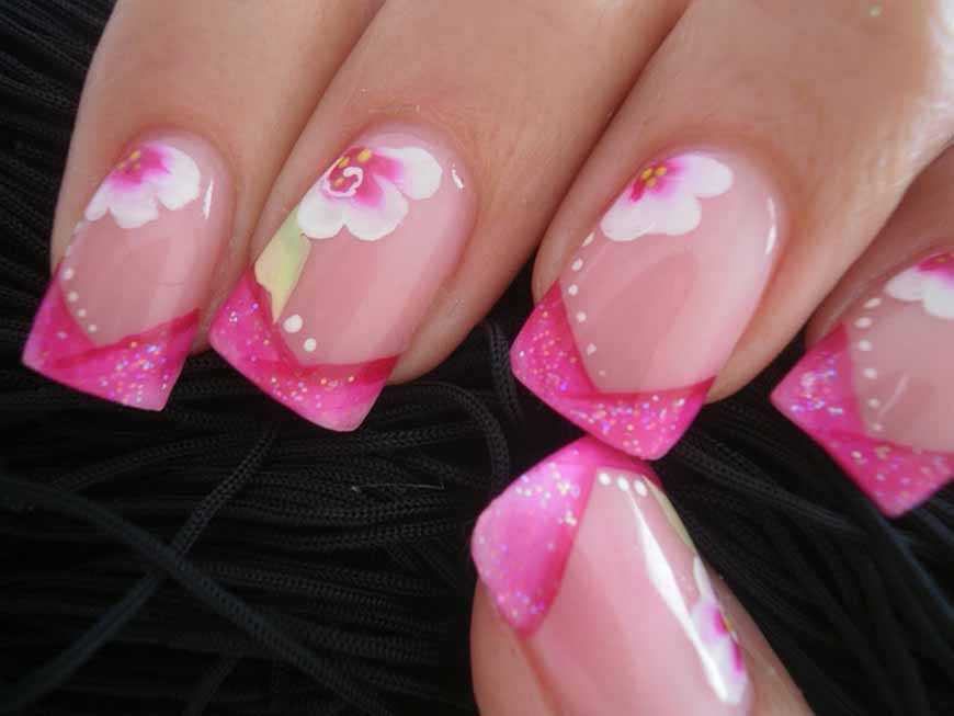 Отлично дополняют розовый французский маникюр рисунки и стразы, делают его более ярким и оригинальным.