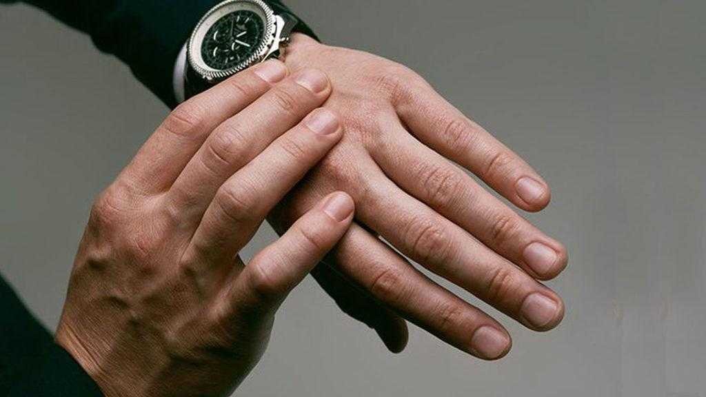 Мужская версия французского маникюра выглядит не так, как женская. Она не такая очевидная и применяется для создания идеально чистых и аккуратных ногтей. Здесь мастер полностью спиливает свободный край мужского ногтя, полирует поверхность, обезжиривает его и наносить белый полупрозрачный лак с легким телесным оттенком на край ногтя.