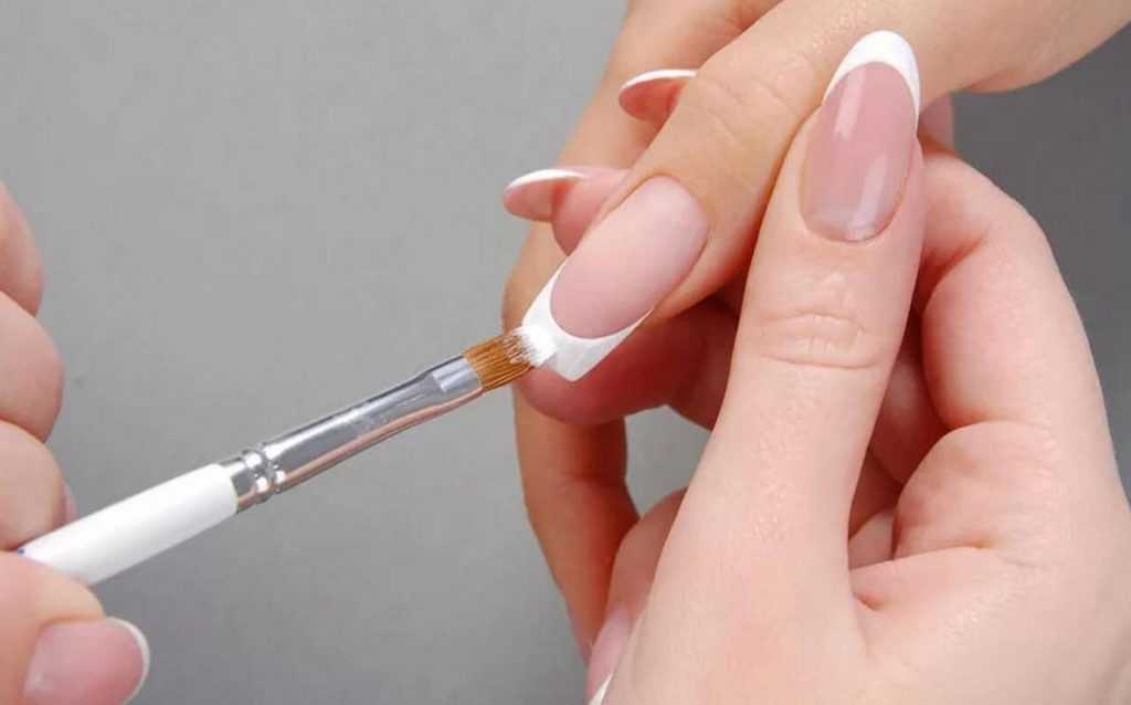 Для создания френча в салоне первым делом выполняют обрезной или аппаратный маникюр. Поверхность обезжиривают и наносят базовый слой лака с прозрачной текстурой. Его сушат 30-120 секунд и накладывают слой пигментированного лака выбранного оттенка (например, нежно-розового). На следующем этапе выполняют французский декор кончиков и завершают дизайн топовым покрытием. Каждый слой сушат до полного высыхания, а также специальными составами убирают липкость.