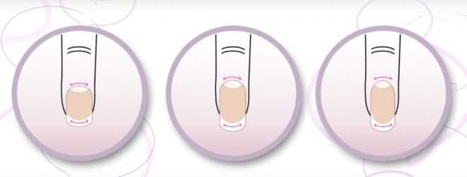 - Далее любую кисть ставьте в параллель вашему ногтю, и начинайте потихоньку растушевывать по ногтю до необходимых размеров.