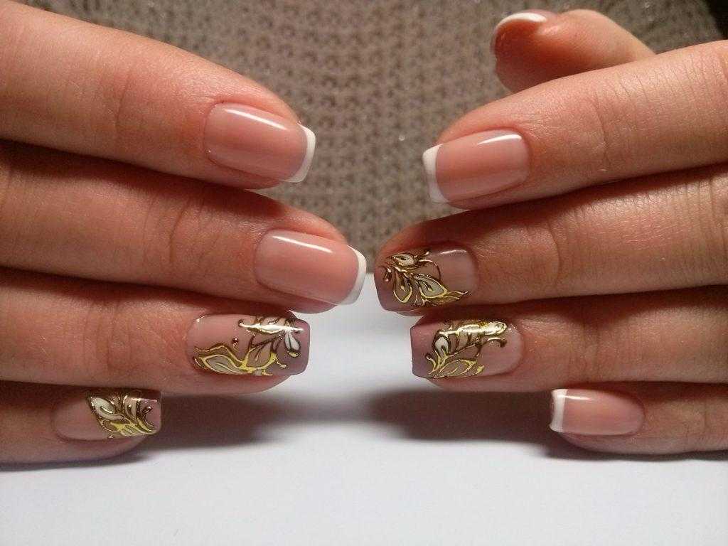 Хотите сделать быстрый праздничный маникюр? Выбирайте френч, только оформите улыбку золотом или серебром. База может быть любой — нейтральный, нюдовой или яркой цветной.