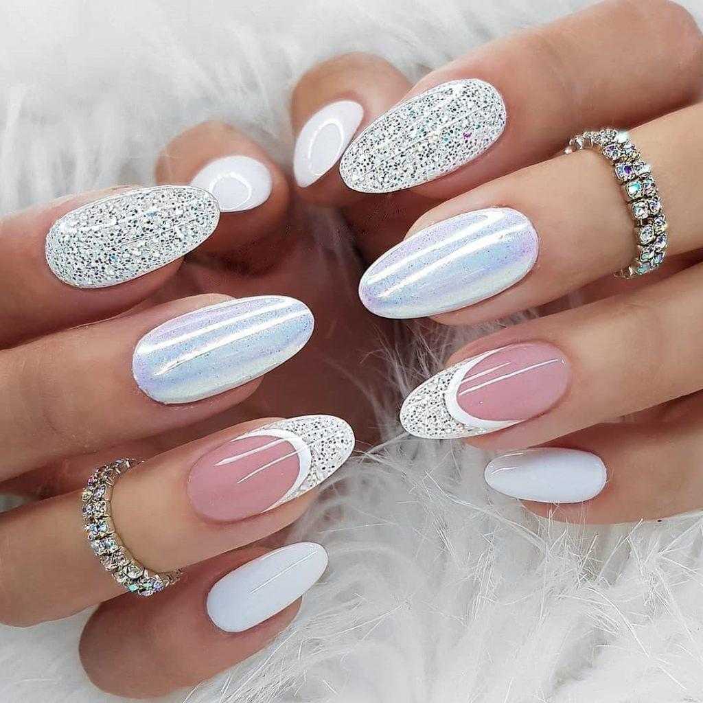 Белые ногти с жемчужной втиркой станут еще более эффектными.