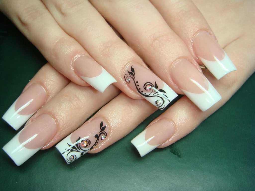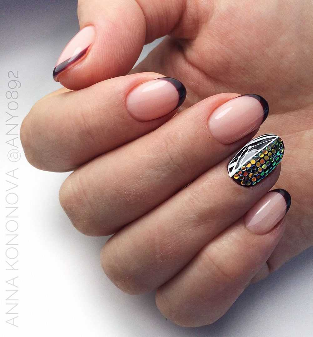 Можно чередовать белый френч на ногтях и черный декор на соседних пальцах, это тоже выглядит необычно, эффектно. Красивый маникюр в стиле «101 далматинец» или «полоски зебры» находятся на пике популярности.