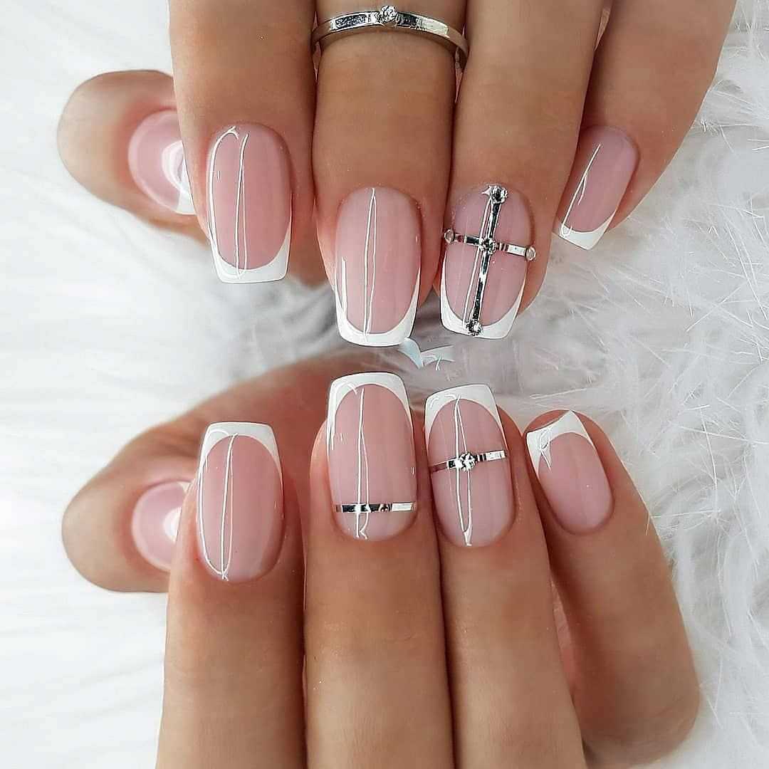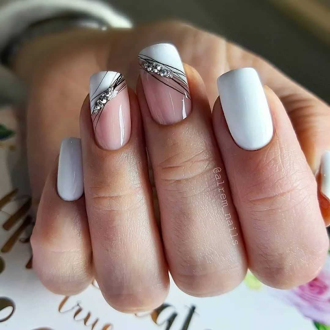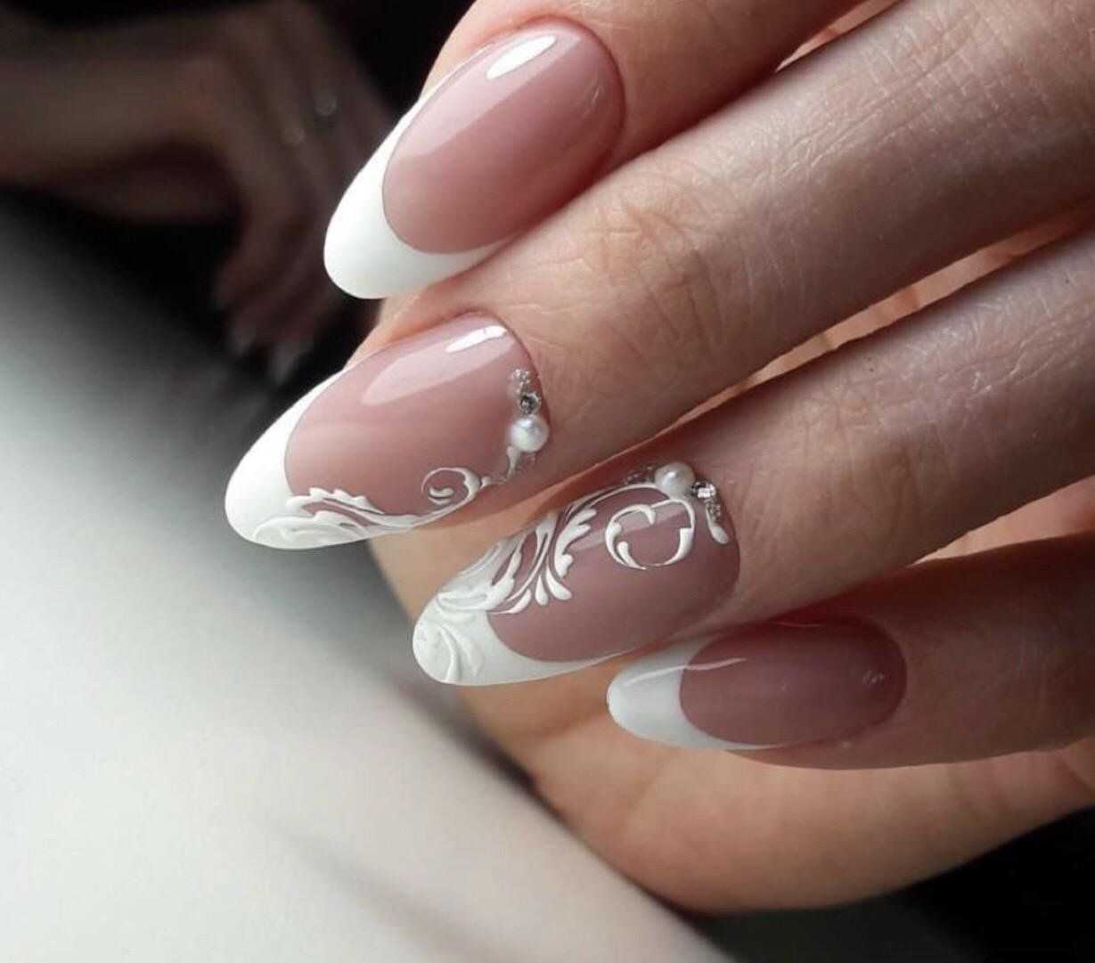 Белый френч на длинные ногти всех форм: новинки и идеи 2023-2024