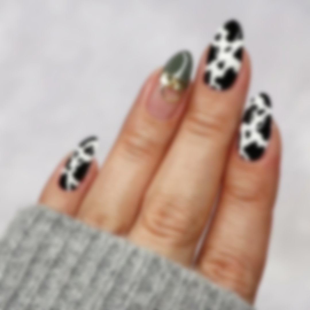 Стильно смотрится рисунок, повторяющий узор шкуры коровы.