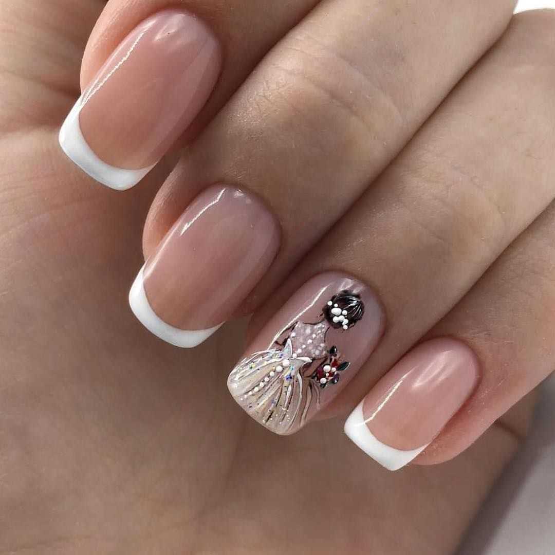 Рассмотрим популярные и модные идеи дизайна ногтей в стиле французского маникюра с рисунком: