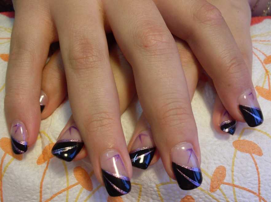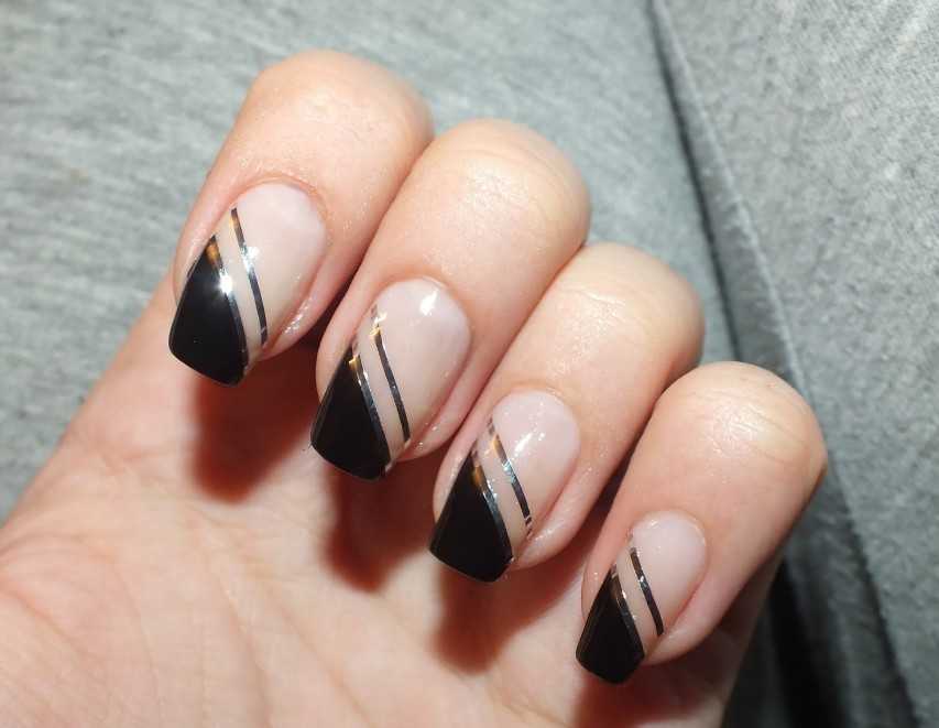 Переходим к антиподу предыдущей позиции – французскому маникюру с использованием черного цвета.