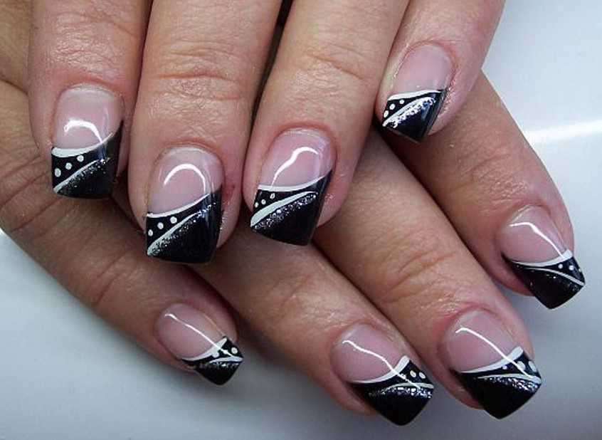Французский маникюр черный с белым