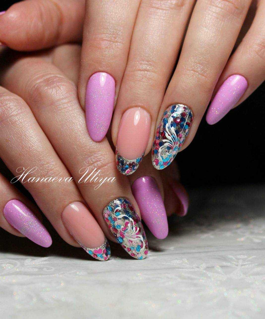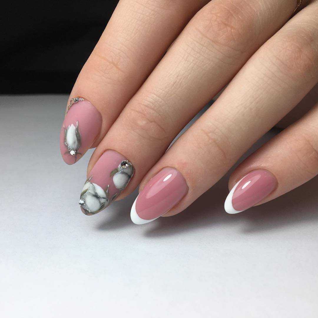| Овальные ногти | Художественные эксперименты с цветочными узорами, блестками или восковым покрытием хорошо смотрятся на овальных ногтях. |