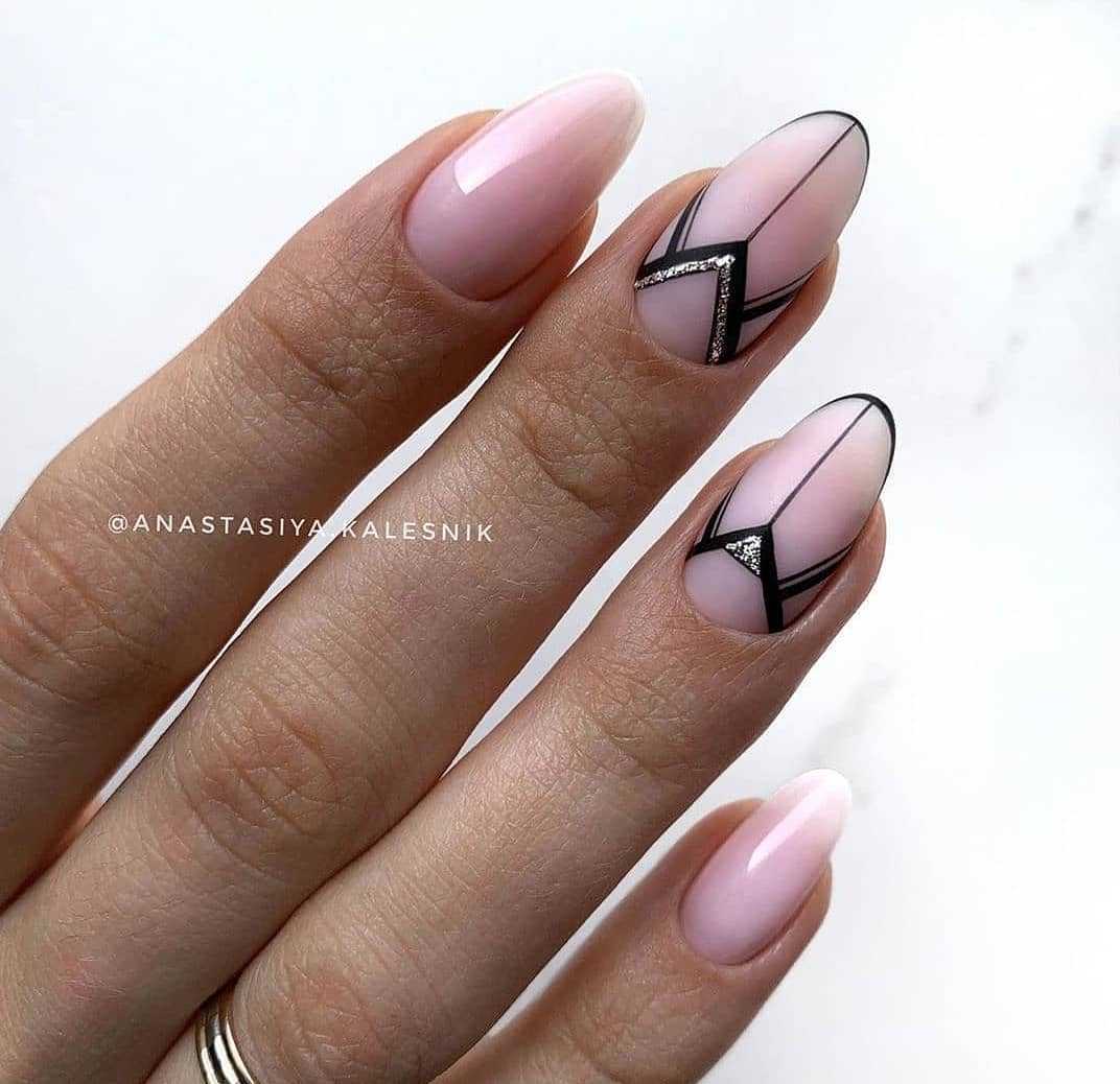 12. Бледно-розовый лак отлично вписывается в модную повестку 2020 года. Мода на естественность и пастельные тона не проходит, поэтому советуем присмотреться к светлым оттенкам розового, в сочетании с белым и черным. Графический дизайн добавляет строгости и интереса.
