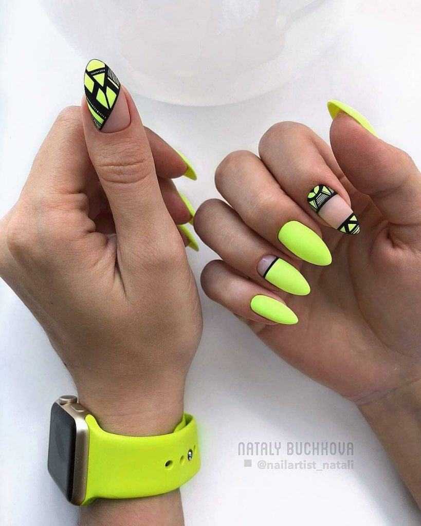 В повседневной жизни наиболее уместными остаются лаконичные варианты оформления. То есть рисунки в геометрическом стиле или минимализме – одни из самых подходящих решений. Они могут быть сдержанными или более активными. Но факт остается фактом, такой маникюр идеально смотрится с большинством образов на каждый день.