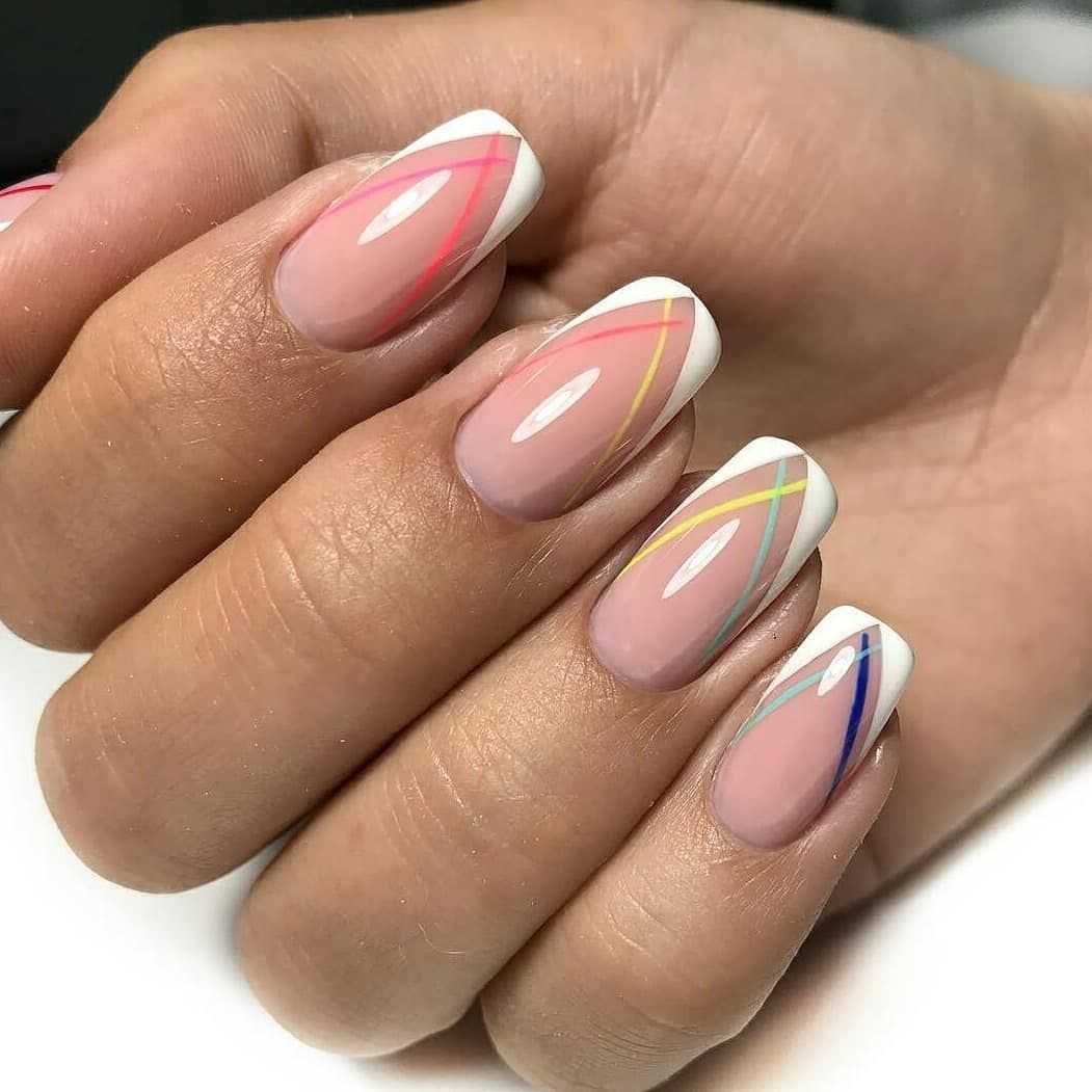 При правильном уходе круглые и овальные ногти всегда выглядят аккуратно. За ними также легче всего ухаживать: они ломаются реже, чем квадратные ногти. Создавая французский маникюр, не бойтесь ярких цветов и графических элементов.
