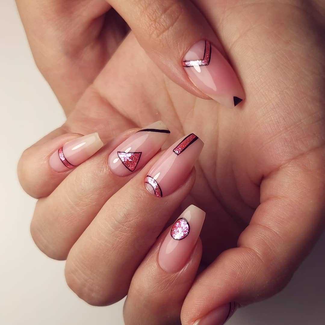 13. В 2020 году розовый дизайн ногтей сложно представить без глиттера. Он хорошо сочетается с разными техниками дизайна