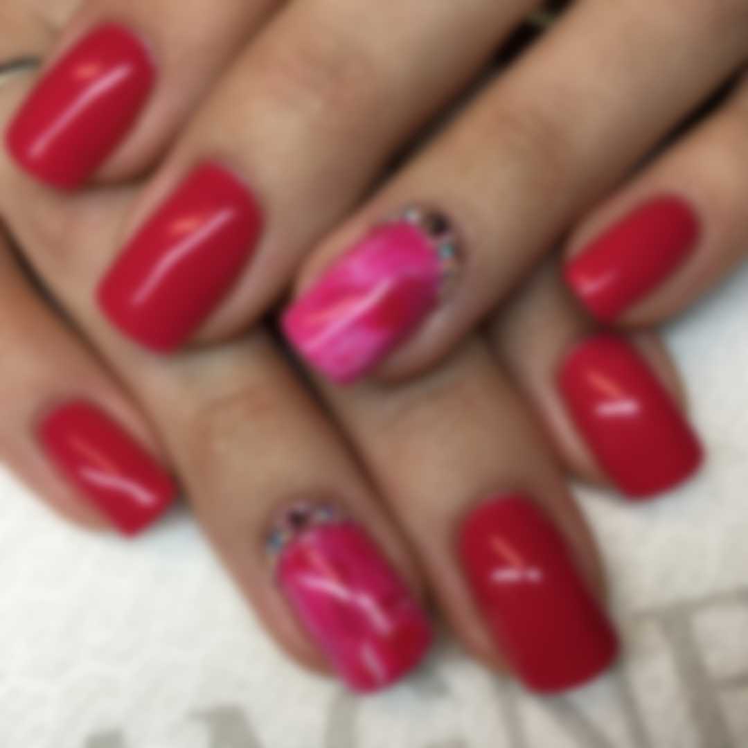 Для монохромных покрытий можно применять все оттенки цвета страсти – от ярких, роковых до нежных, сдержанных. В зависимости от конкретного цвета маникюр будет повседневным или вечерним.
