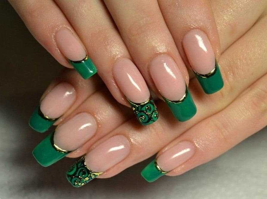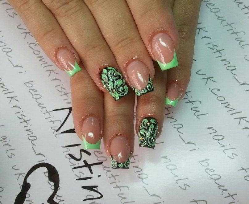 Дизайн в стиле геометрия считается влиятельным стилем оформления, который имеет главные позиции в современных тенденциях. Легкие и правильные линии могут преобразить любую форму ноготков, при этом сделать их интересными и загадочными. Ведь не каждый человек поймет, что обозначают эти квадраты и ромбы. Если геометрический маникюр имеет большое количество острых углов, то это может означать, что обладательница данного дизайна — уверенная в себе и имеет строгий характер. Французский маникюр в таком исполнении может выполняться в различных оттенках, начиная от черного и заканчивая салатовым цветом. Все зависит от фантазий мастера и требований клиентки.