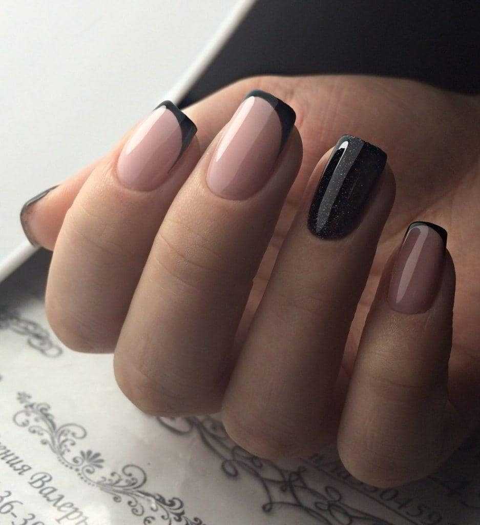- часть дизайна — френч наносится на 1-2 ногтя руки;
