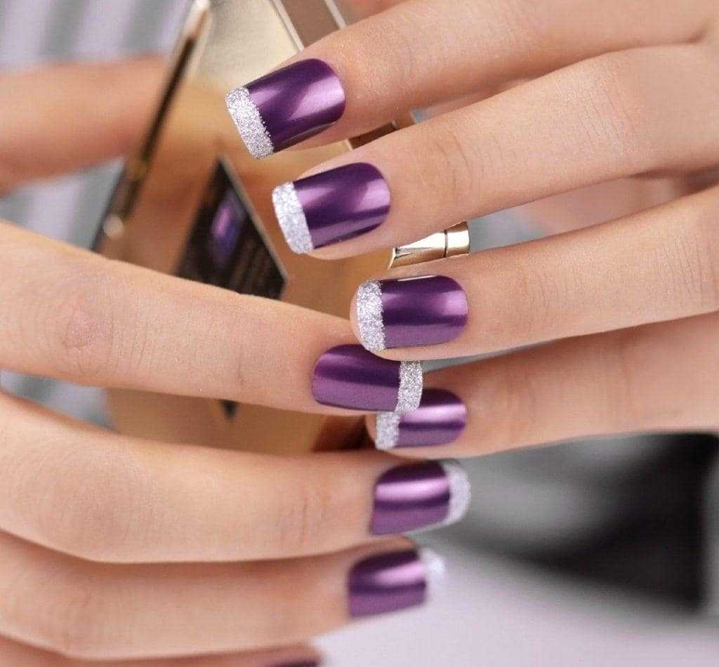 - френч с блестками — сияющие частицы можно заложить в основу или в финишное покрытие.