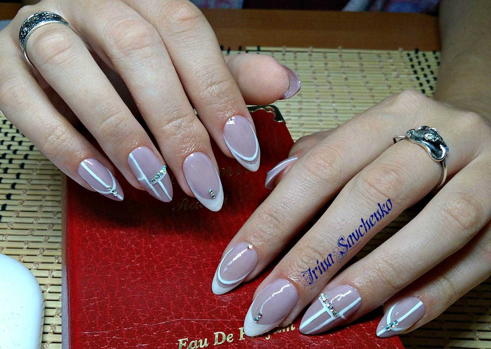 А вот маникюр на средних или длинных миндальных ногтях подчеркнет естественные линии пластины и будет гармонично сочетаться с любым типом дизайна.