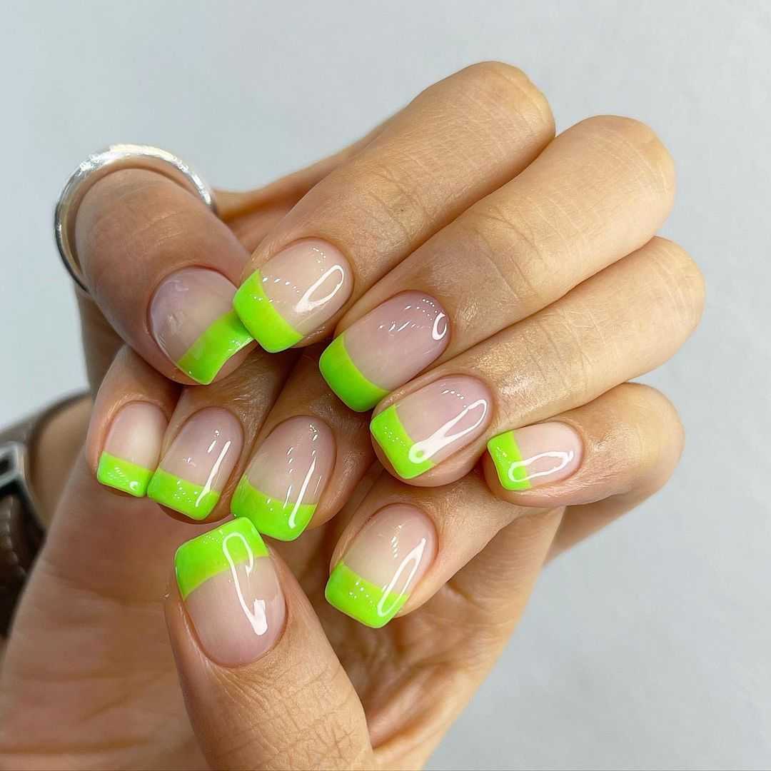 В летние месяцы девушкам хочется легких образов и ярких красок. Сезон с июня по август в 2023 году станет исключение для отказа от разноцветных гель-лаков. В создании френча можно использовать даже кислотные цвета. К наиболее стильным вариантам сочетания относятся: