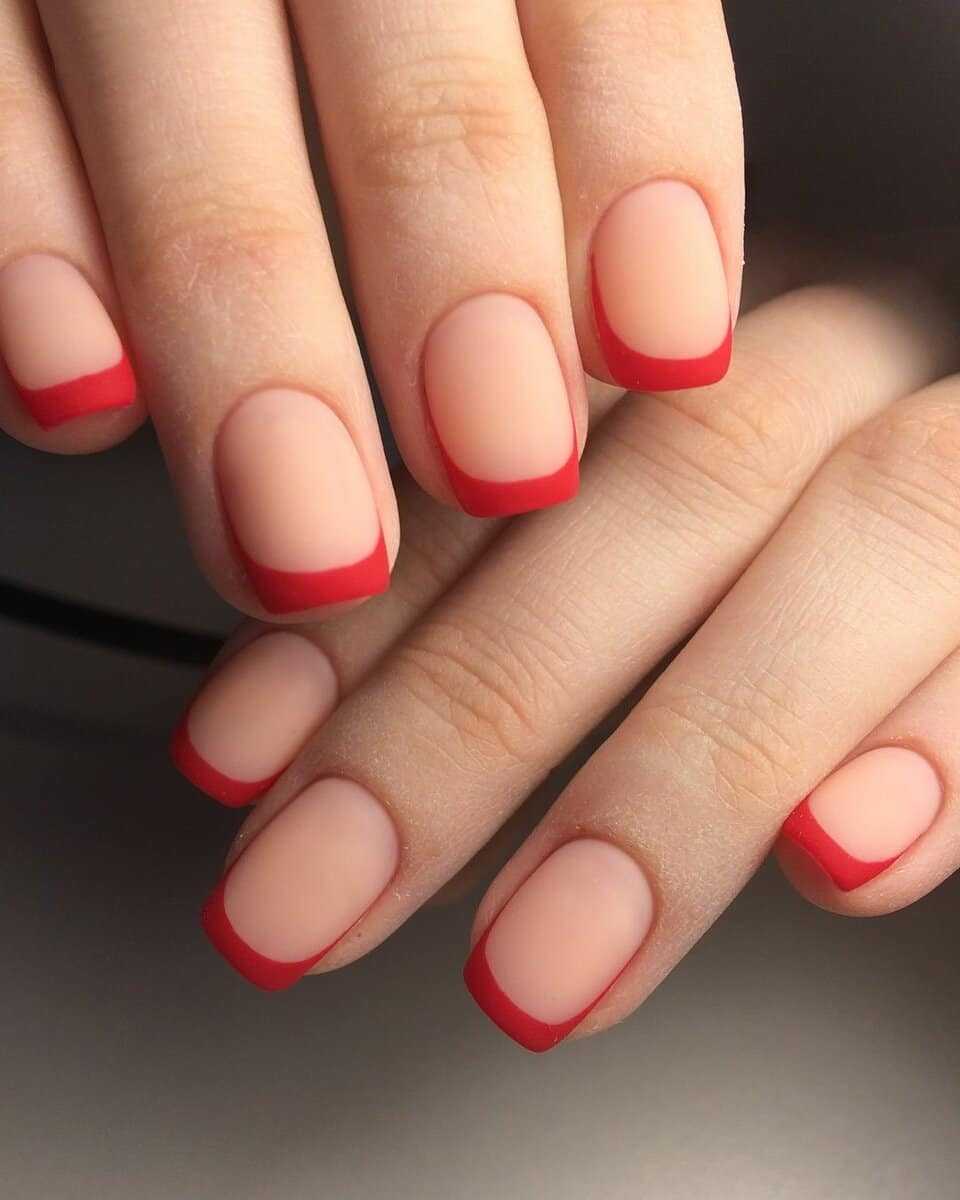 - яркий цвет лака с матовым покрытием и глянцевой полоской френча;