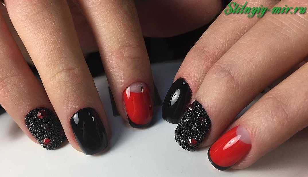 Классическое сочетание черного и красного предпочитают уверенные в себе и страстные дамы. Дизайн не подойдет для офисных будней, но стильно смотрится на вечеринке. Его нужно комбинировать с соответствующим скромным или классическим нарядом, чтобы не выглядеть вульгарно.