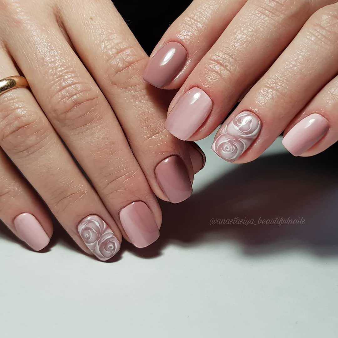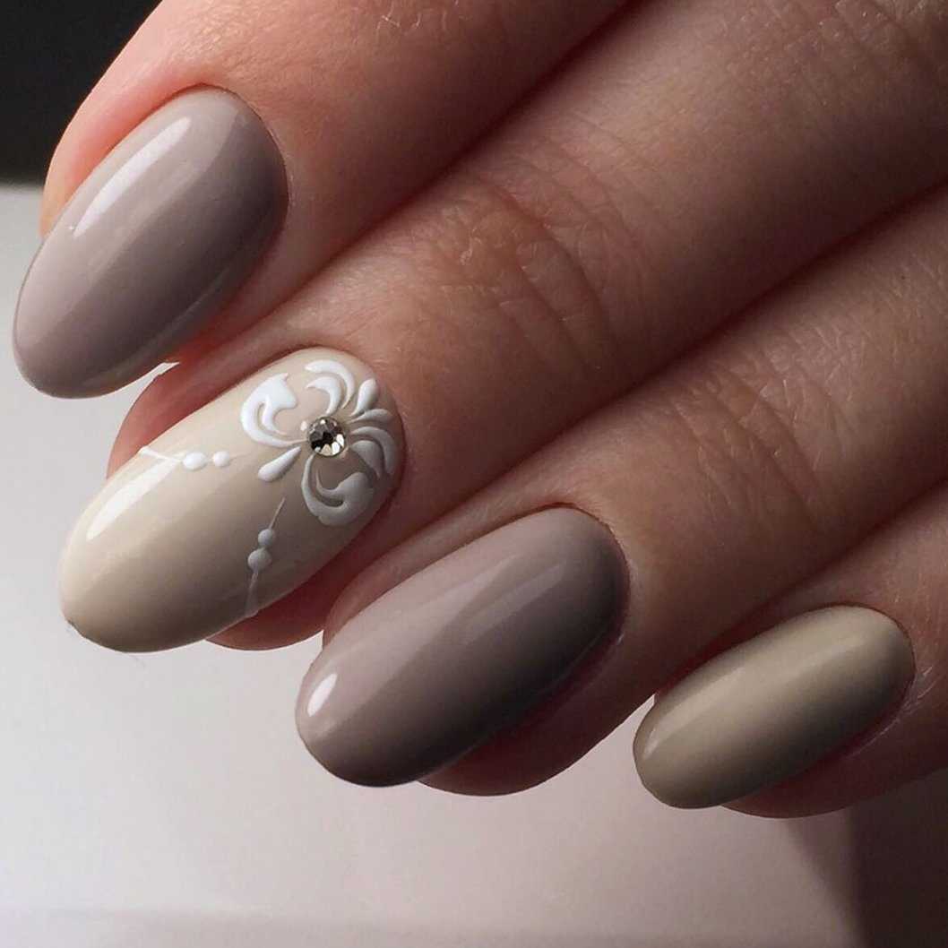 Для создания нежного нейл-арта рекомендуется использовать светлые оттенки коричневого цвета — например, бежевый, терракотовый, карамельный. Декоративных элементов должно быть по минимуму.