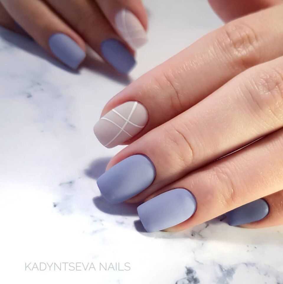 Бежевый матовый маникюр с геометрическим дизайном на коротких ногтях