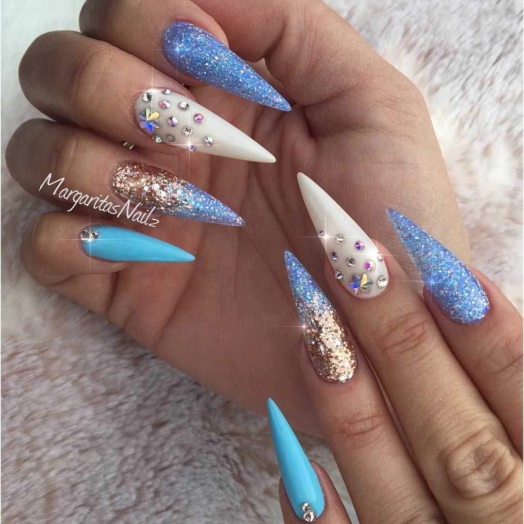 #6 Бело-голубой маникюр с блестками