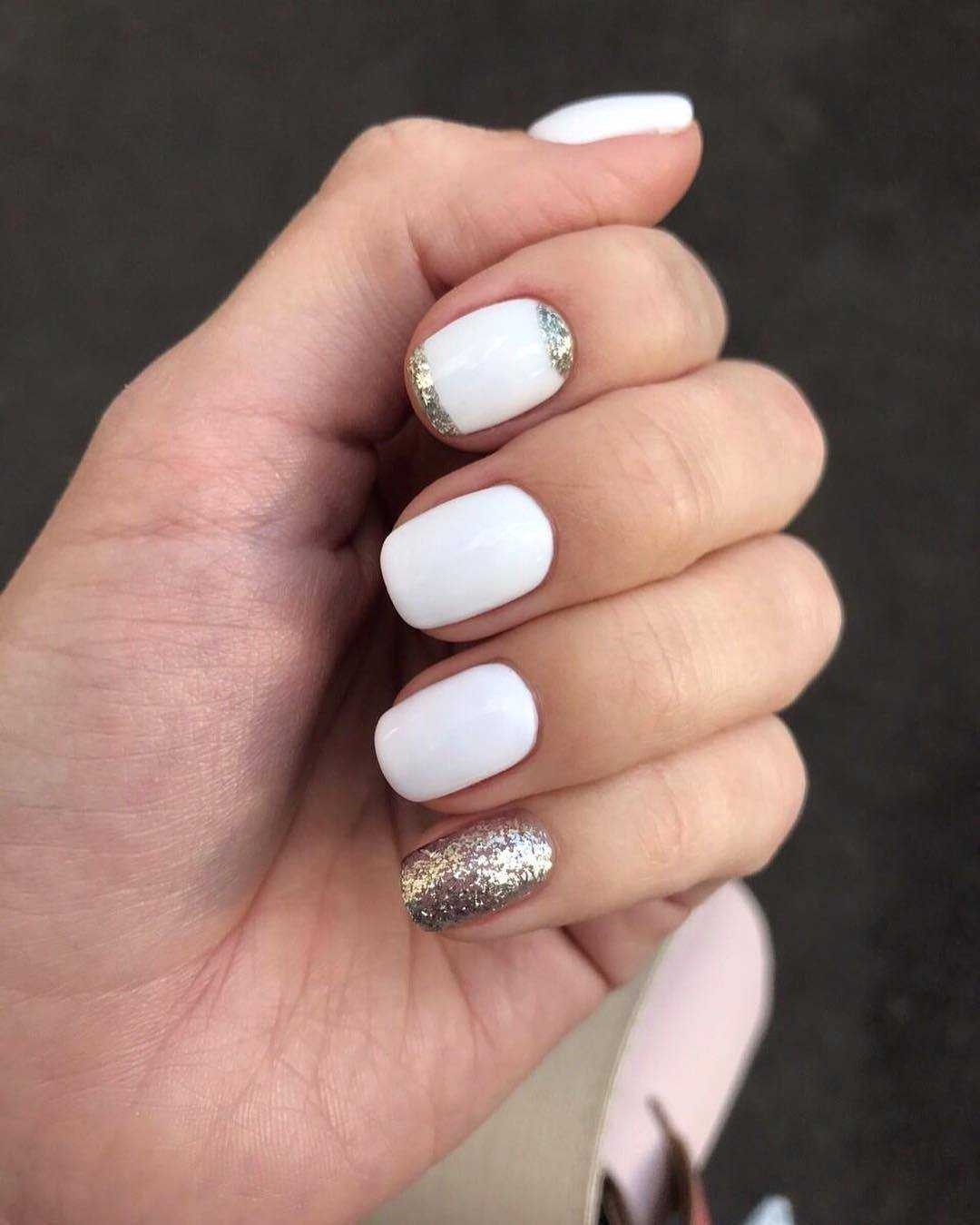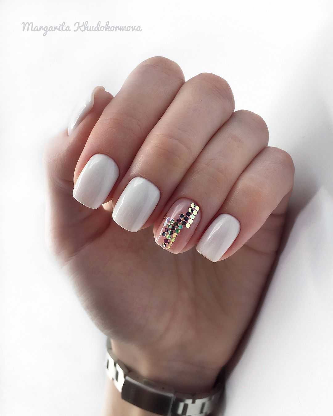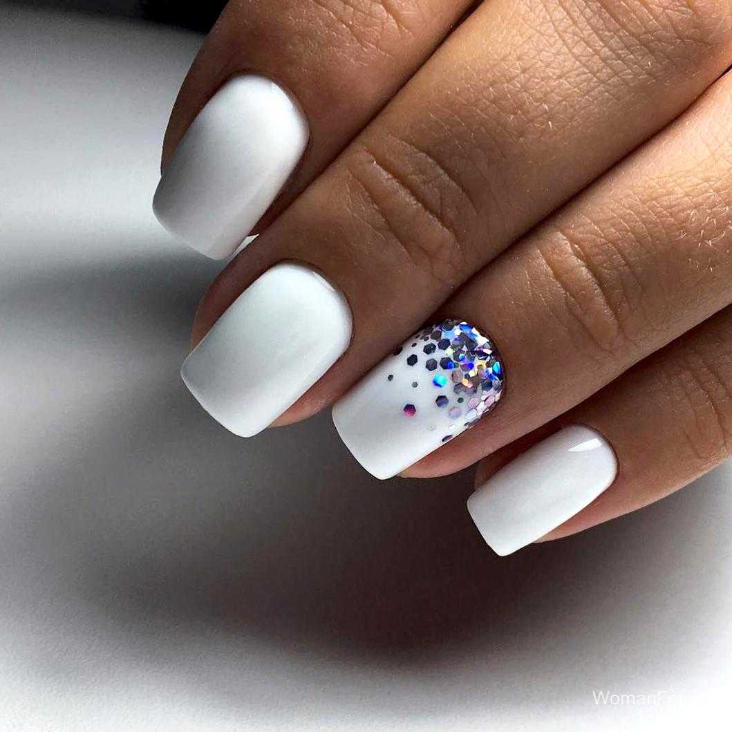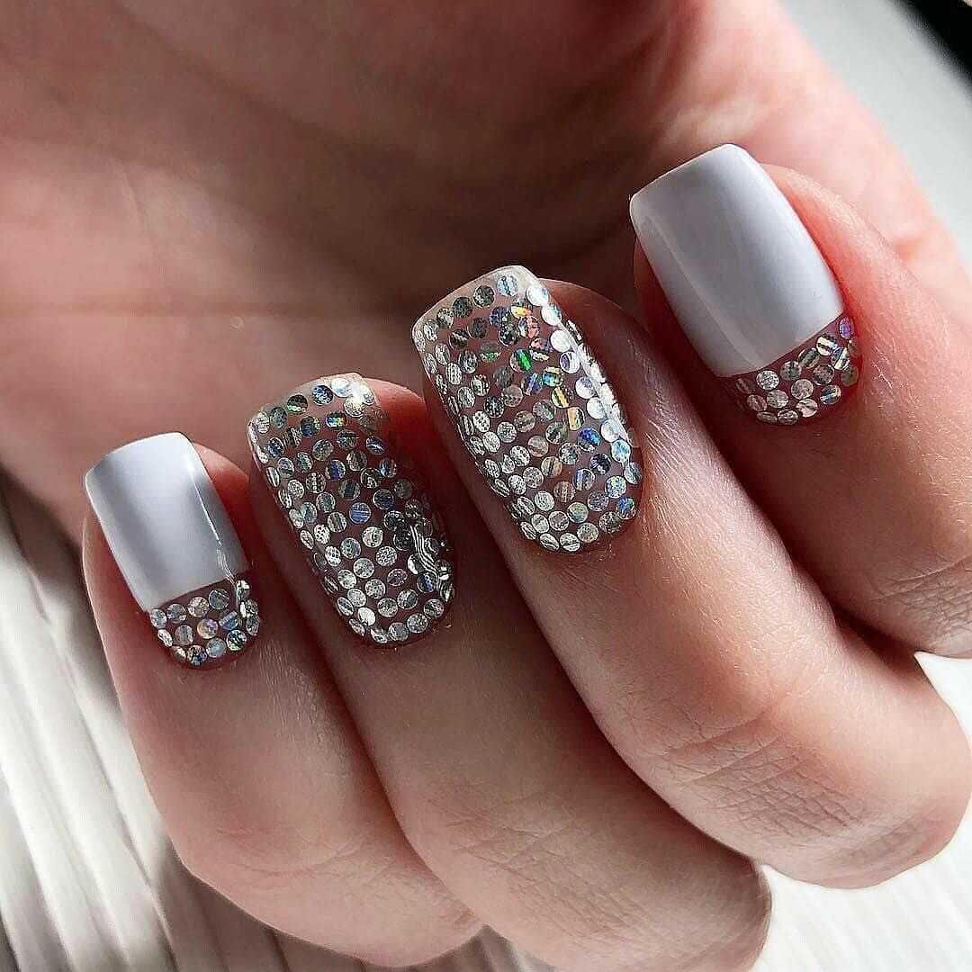 Белый маникюр с блестками 2020: актуальные идеи и сочетания