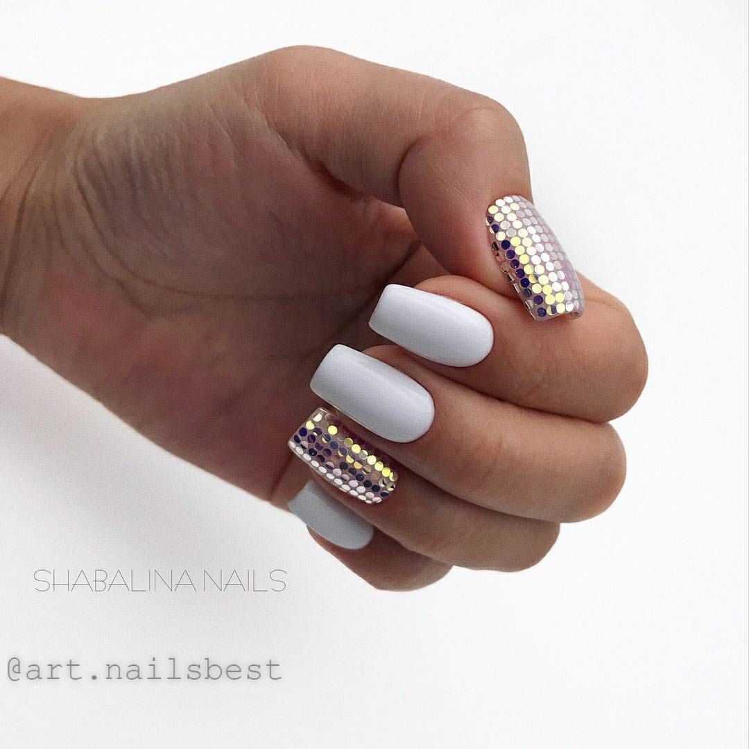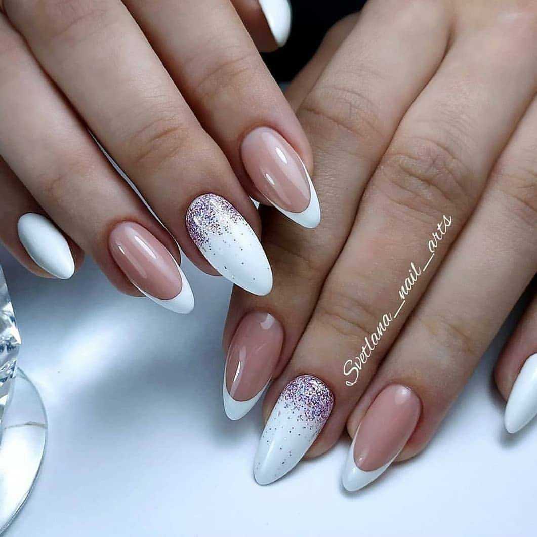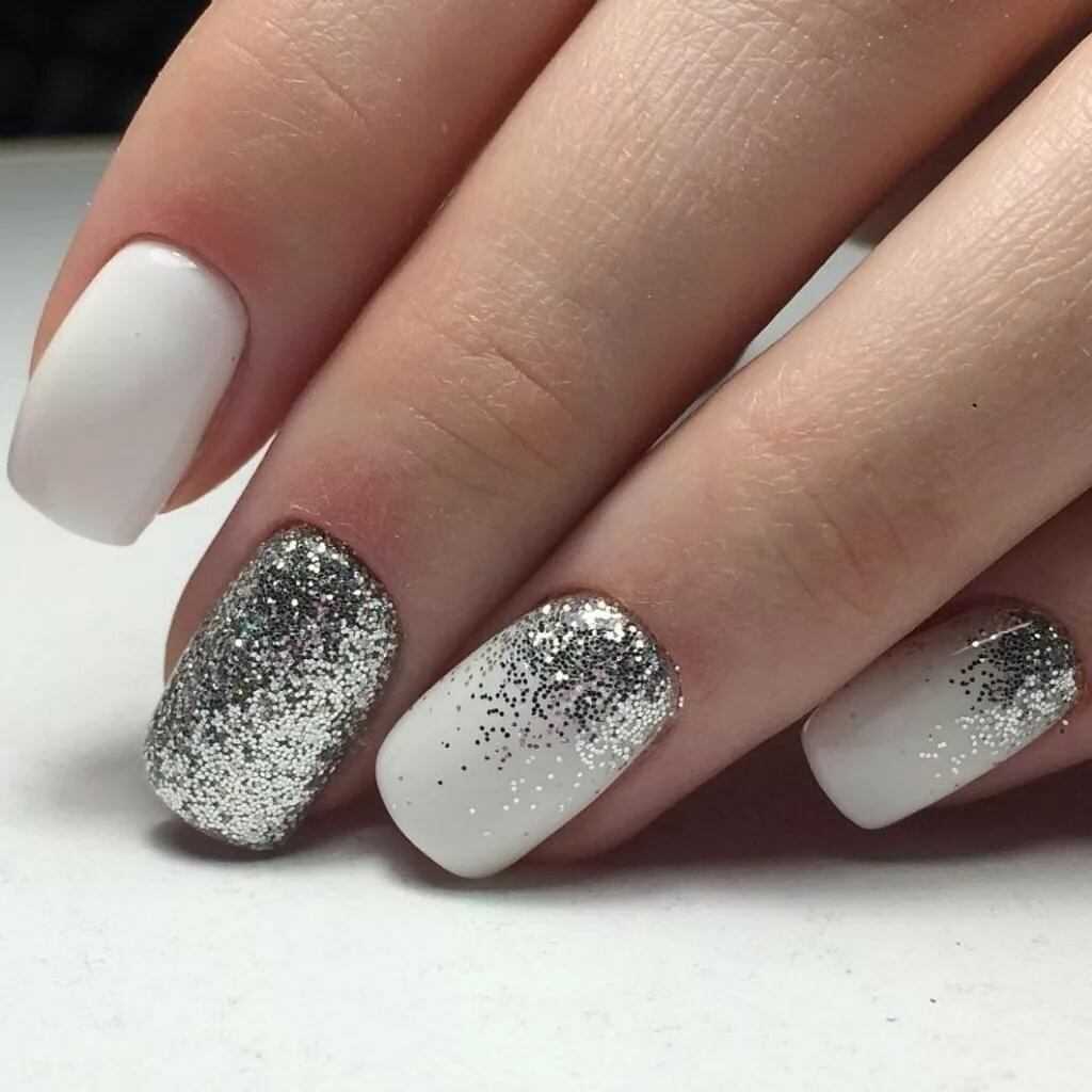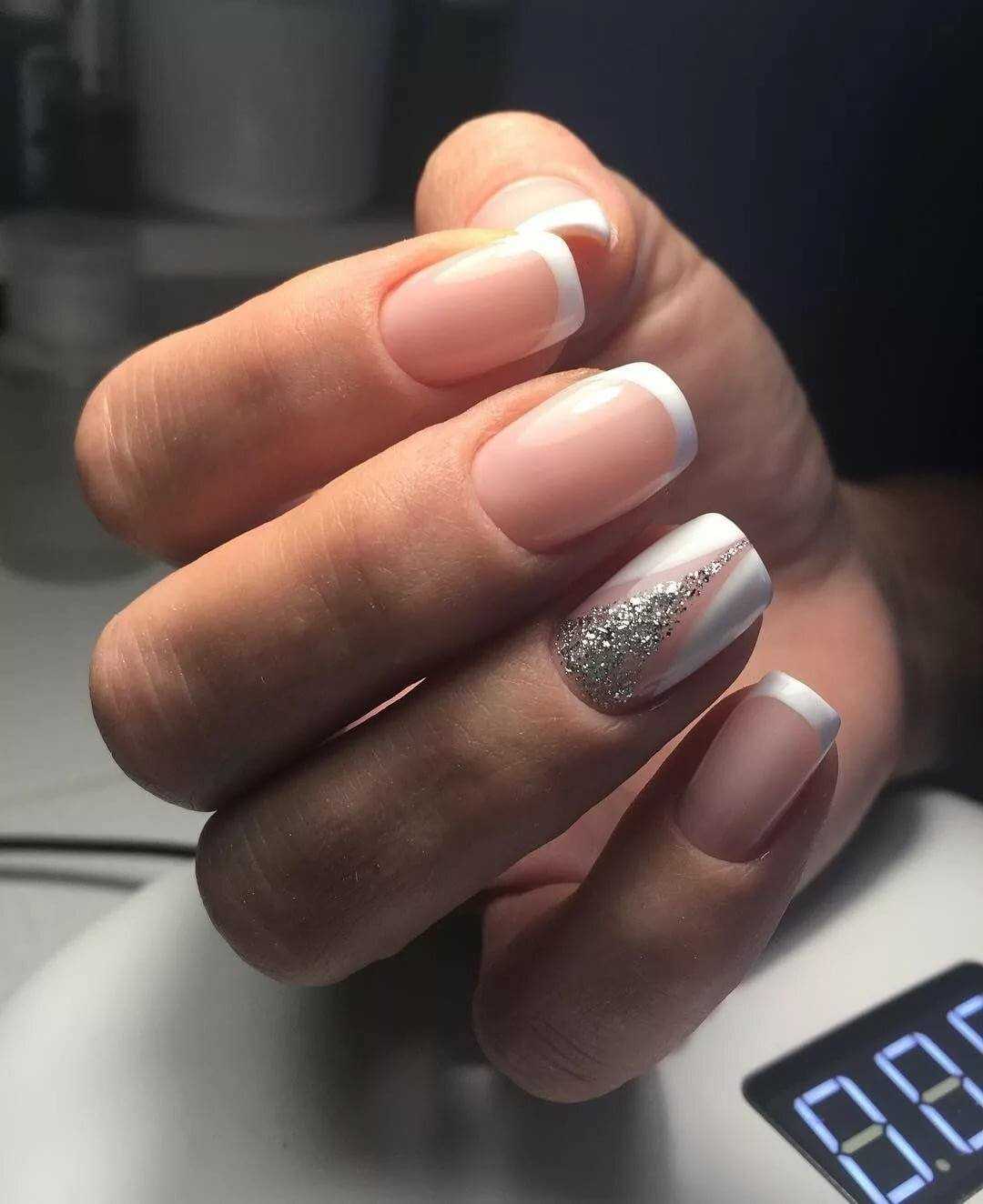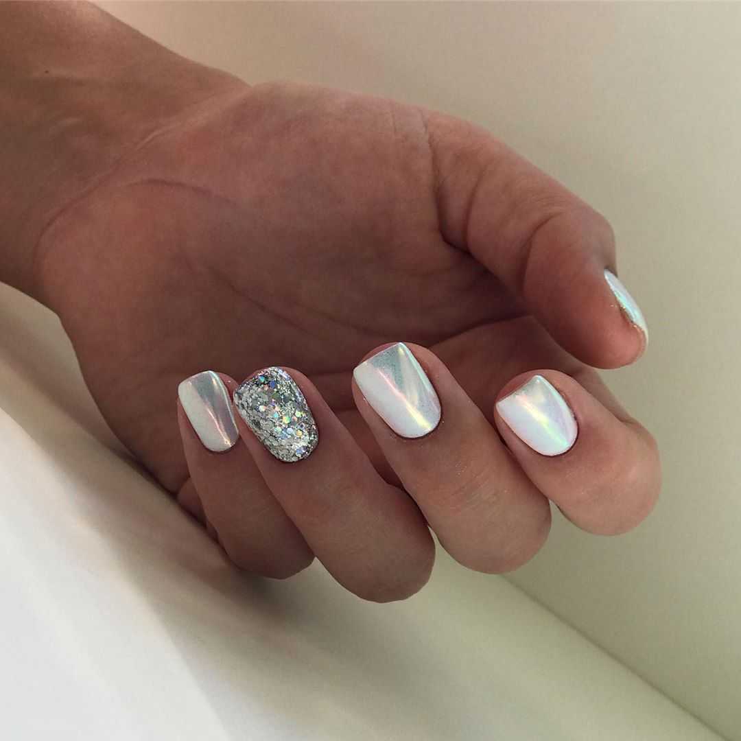 Белый маникюр с блестками 2020: актуальные идеи и сочетания