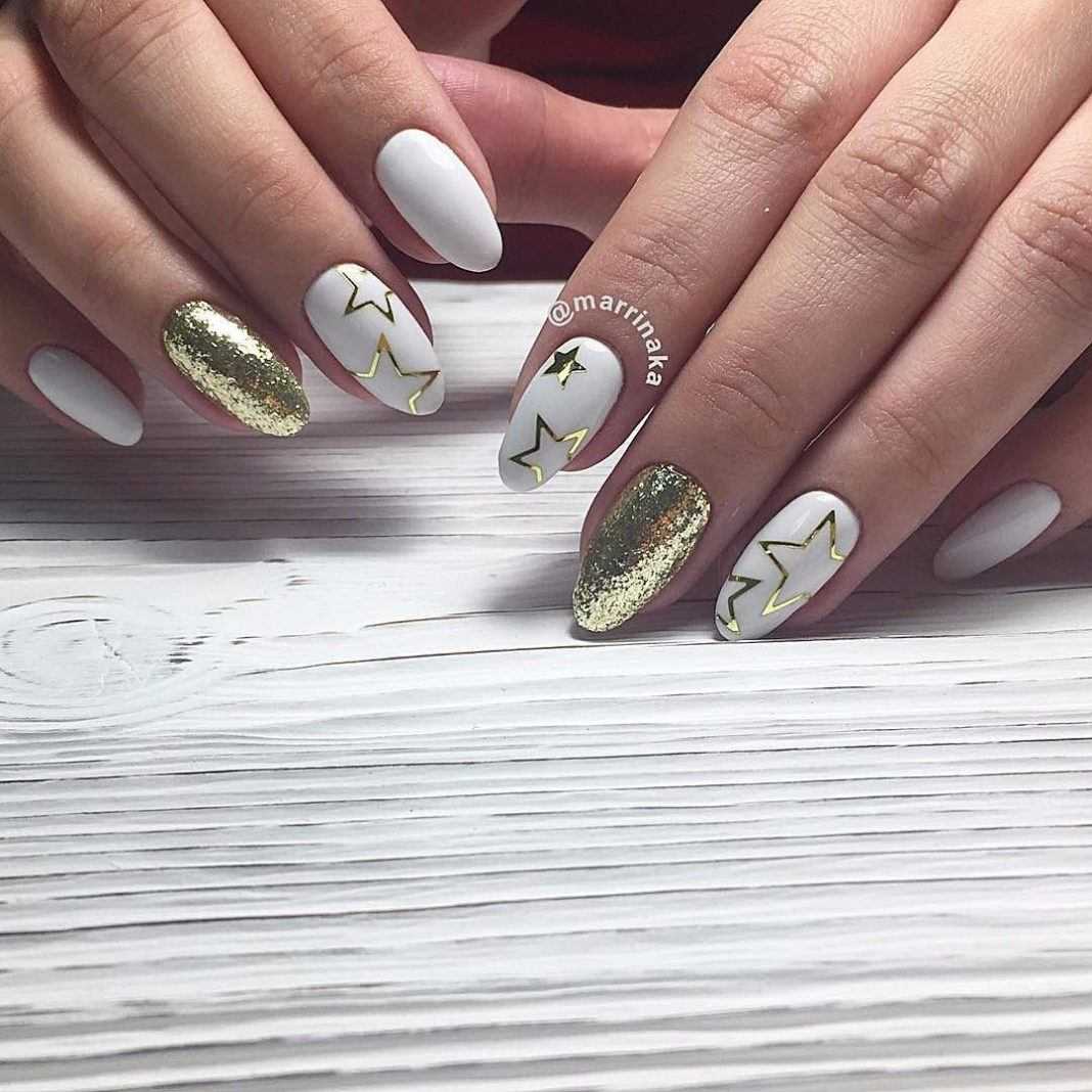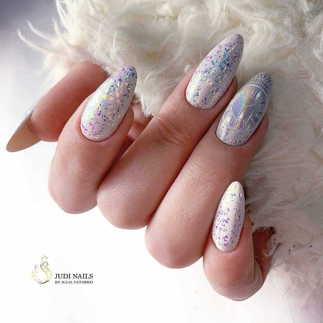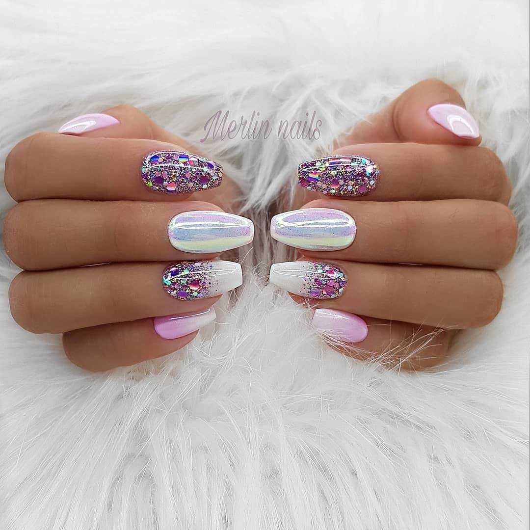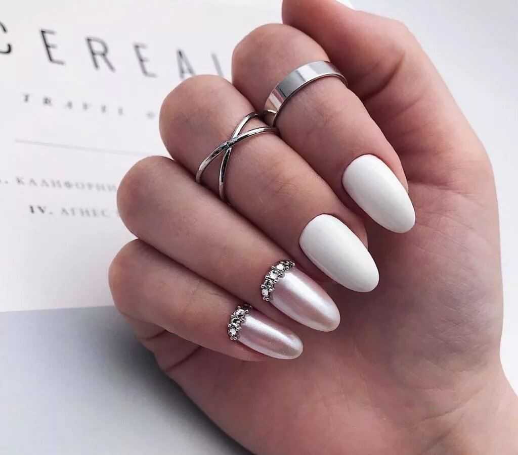 Белый маникюр с блестками 2020: актуальные идеи и сочетания