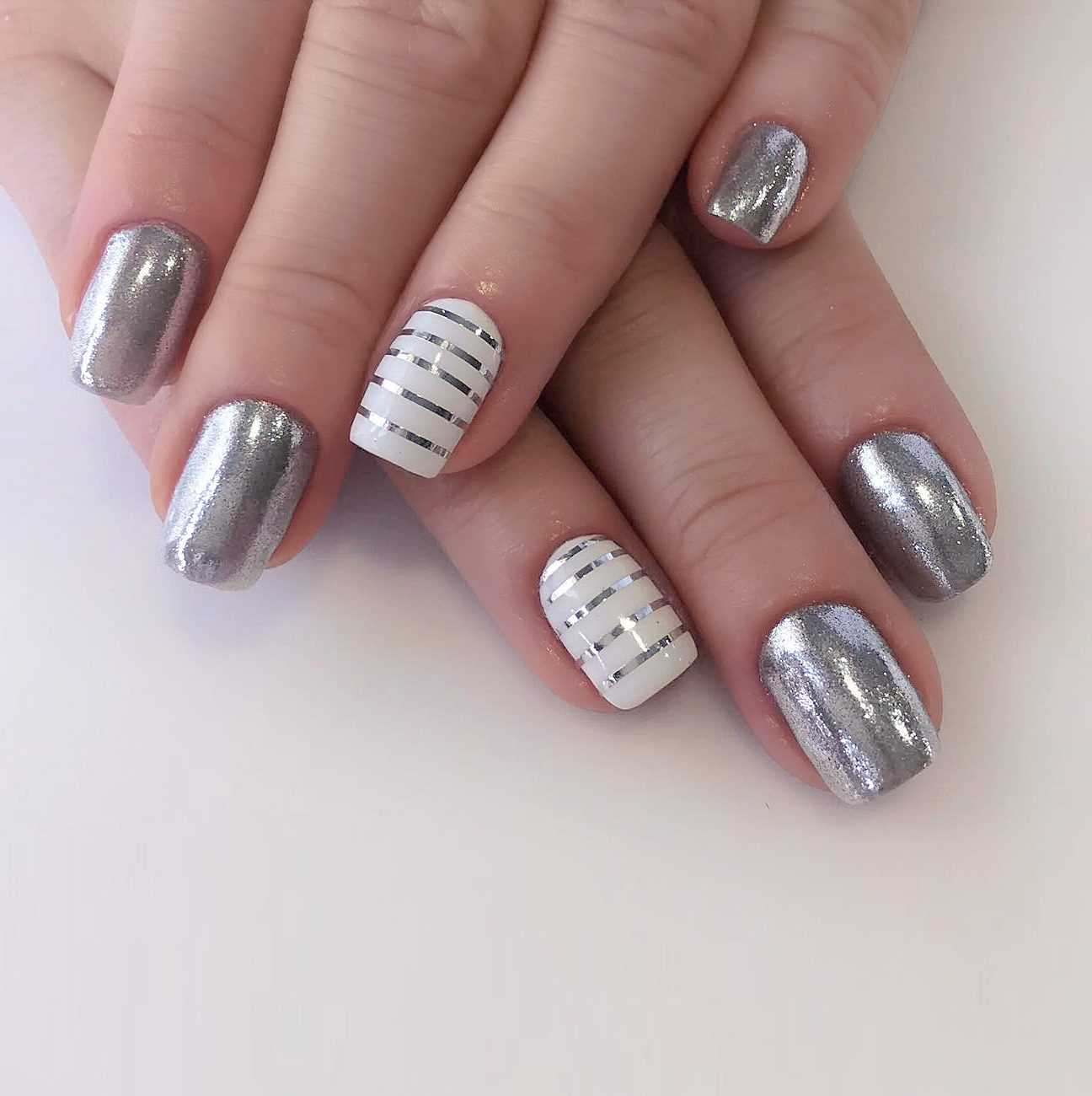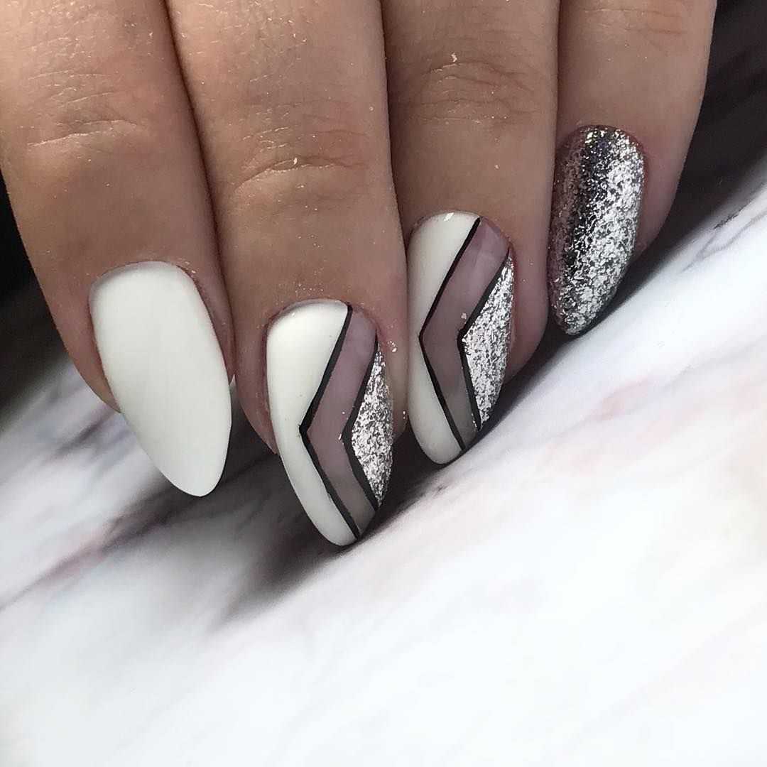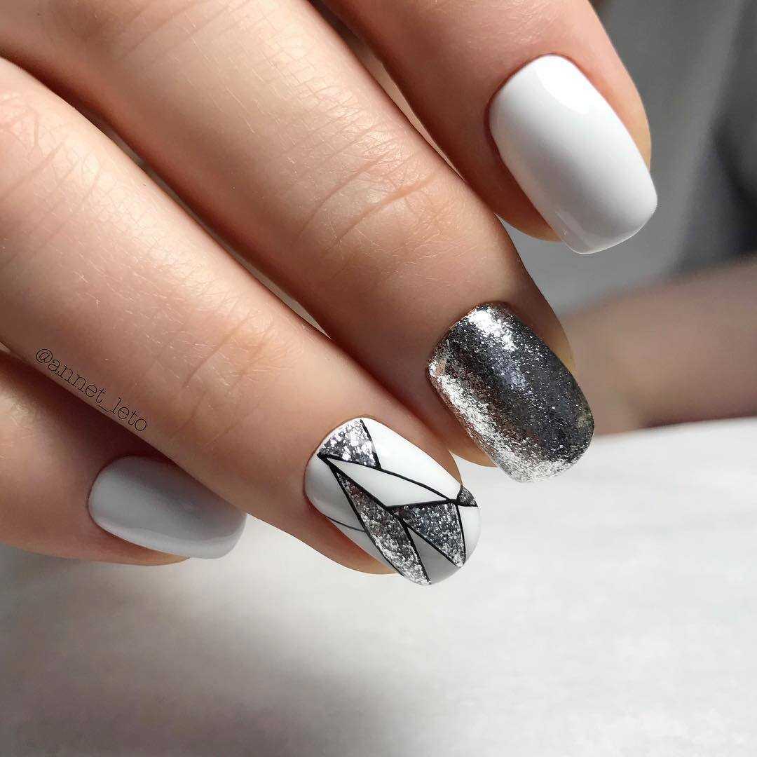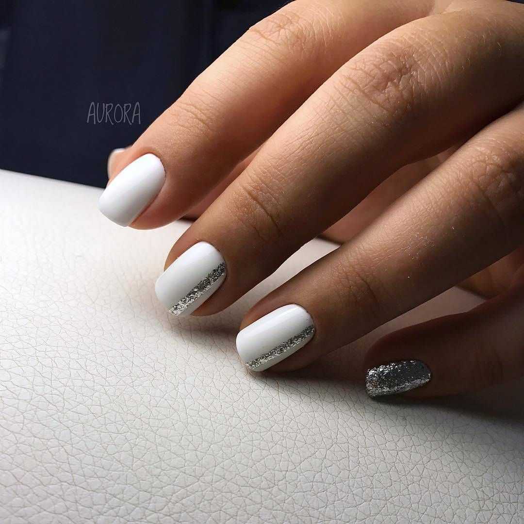 Белый маникюр с серебром