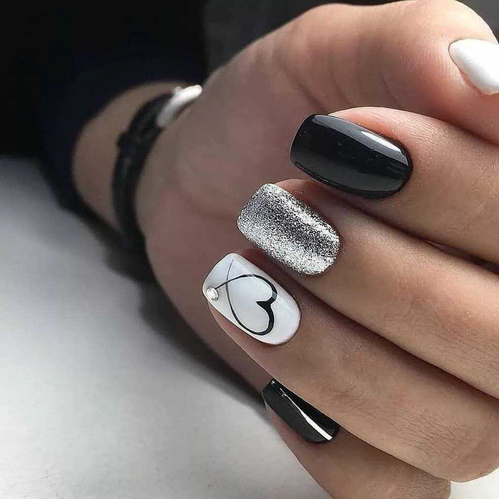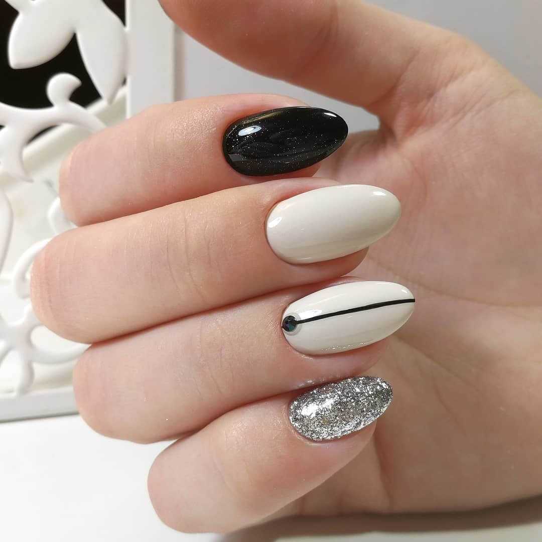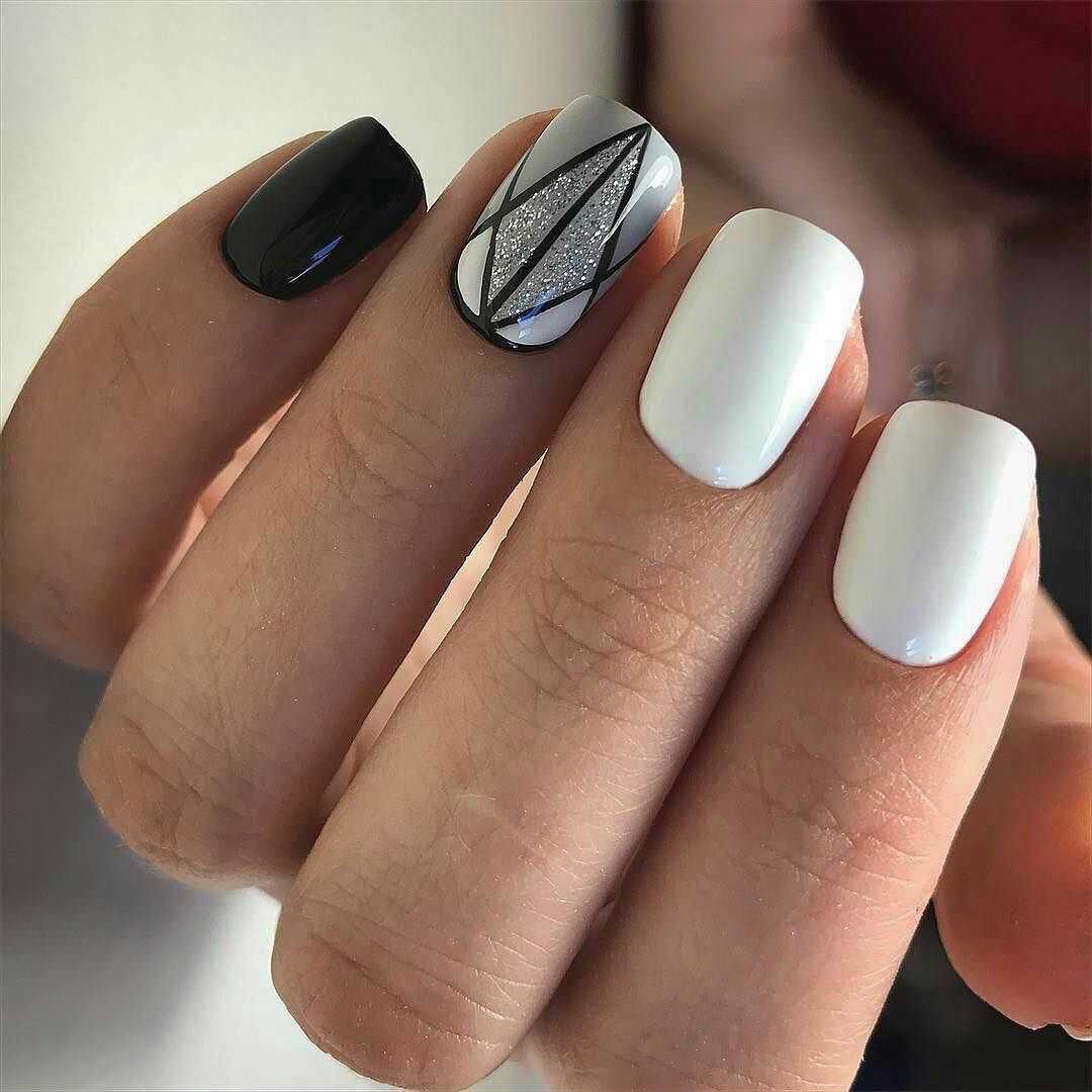 Вы также можете выбрать простой дизайн с великолепными деталями или ногти с инкрустацией, которые в настоящее время в тренде. Сочетание черного с белым на короткие ногти есть возможность выполнить в различных техниках, выделяя несколько ногтей.