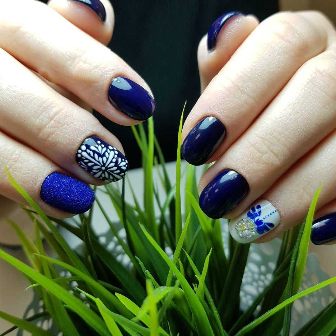 Шикарно выглядит дизайн с акриловой пудрой, с кружевным декором, морской тематикой. Бело-голубой маникюр великолепно смотрится на коротких ногтях, иногда даже лучше, чем на длинных. Используйте однотонное покрытие, дизайн с точками, морской волной, изображением морских обитателей.
